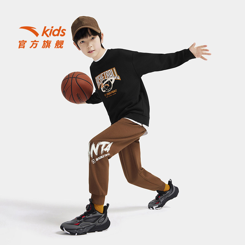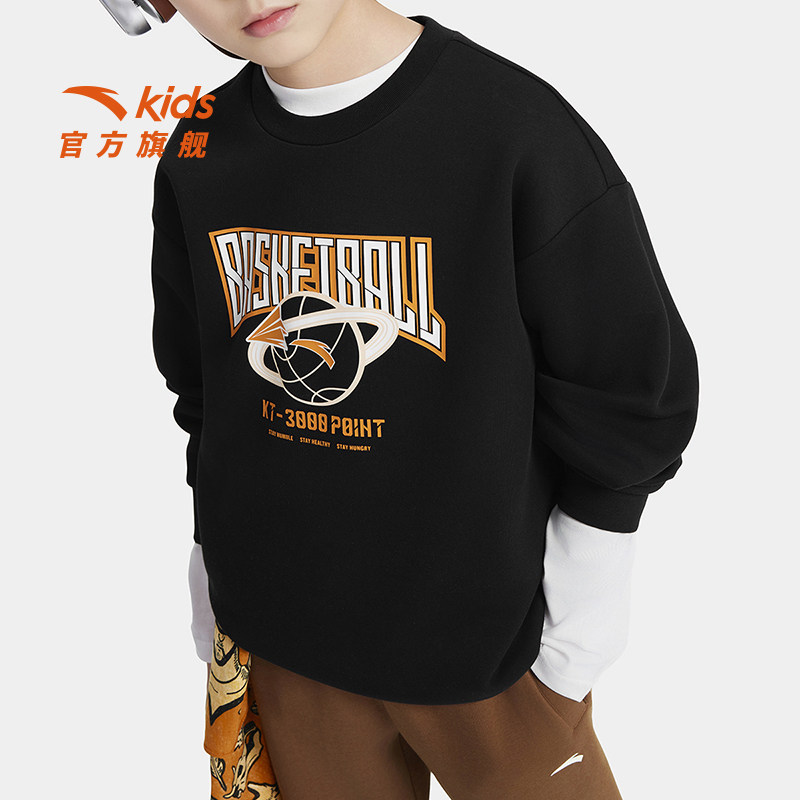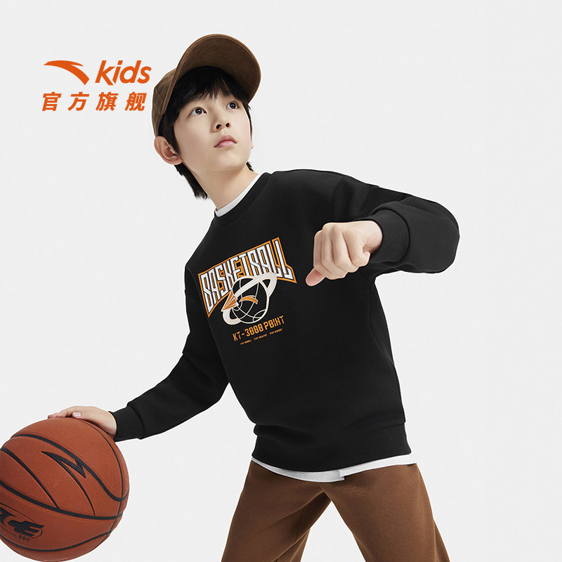 安踏儿童男大童针织套头衫2026秋季新款舒适亲肤中大童运动卫衣潮