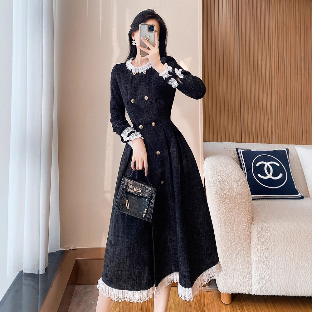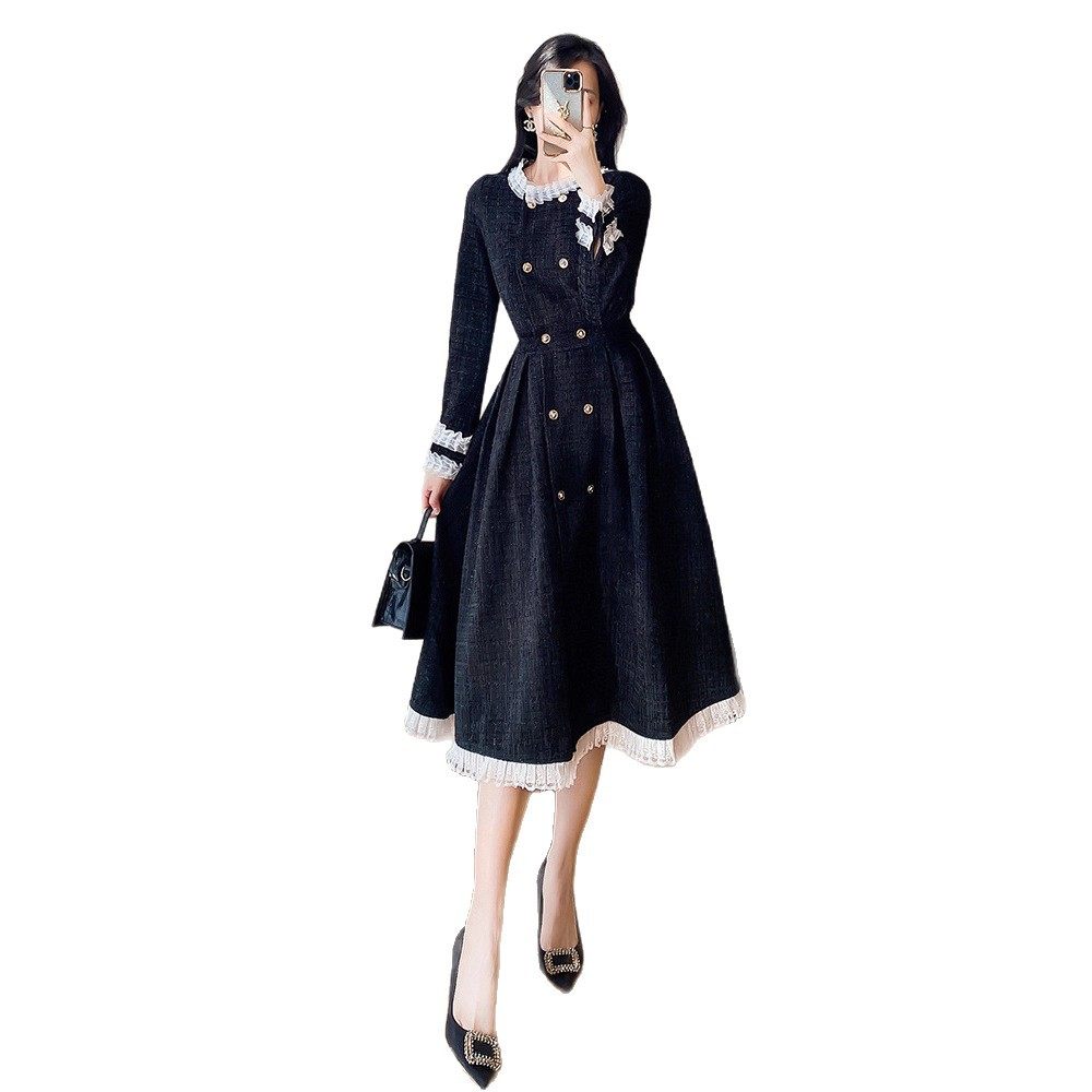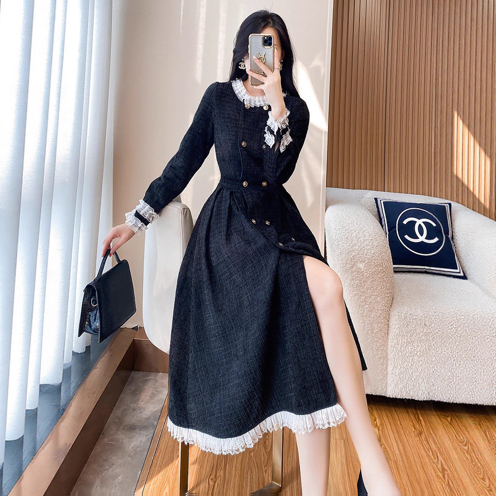 小香风黑色针织连衣裙春秋冬季新款女装气质高级感打底内搭长裙