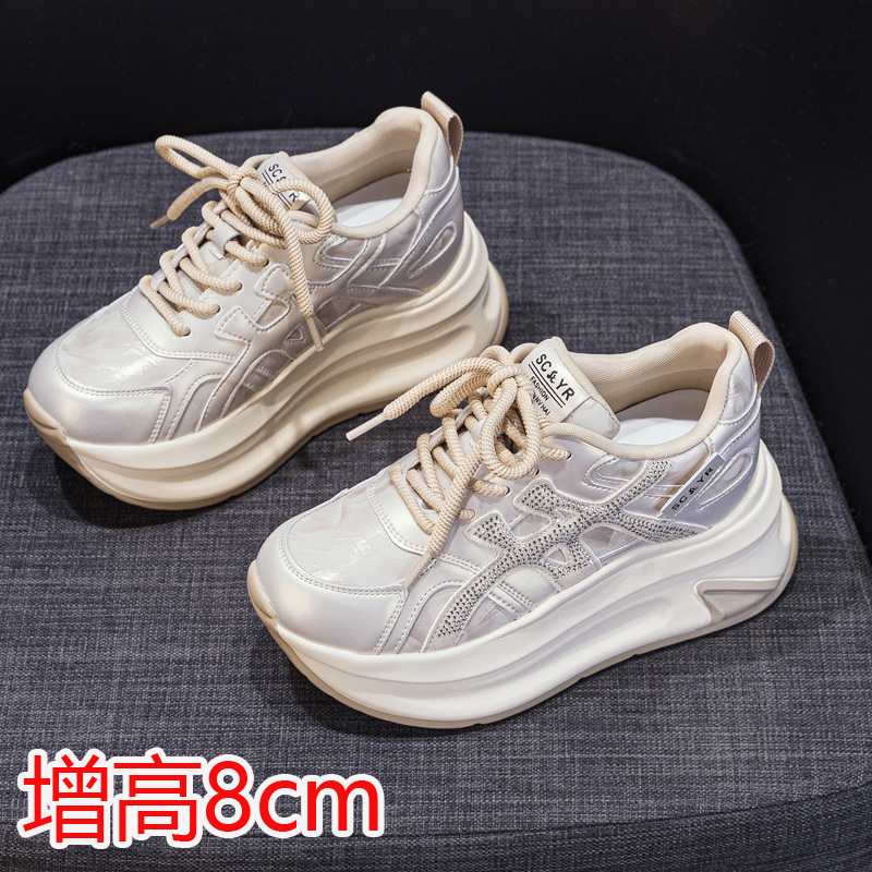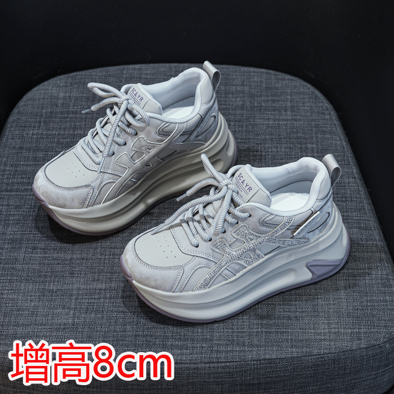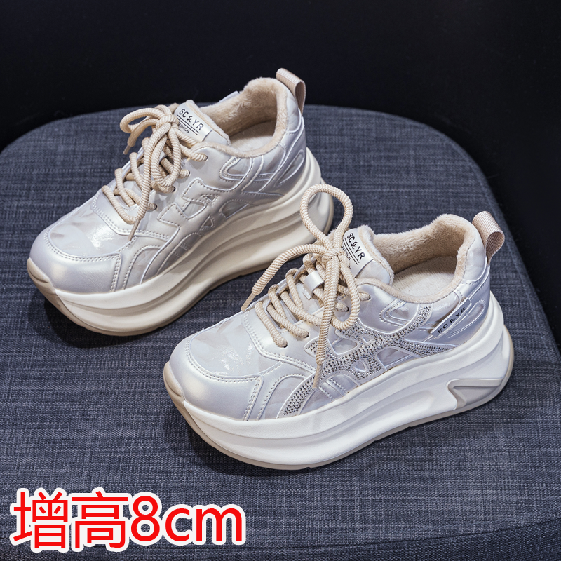 阿甘鞋女款2026新款内增高8cm厚底老爹鞋小个子加绒运动休闲鞋冬