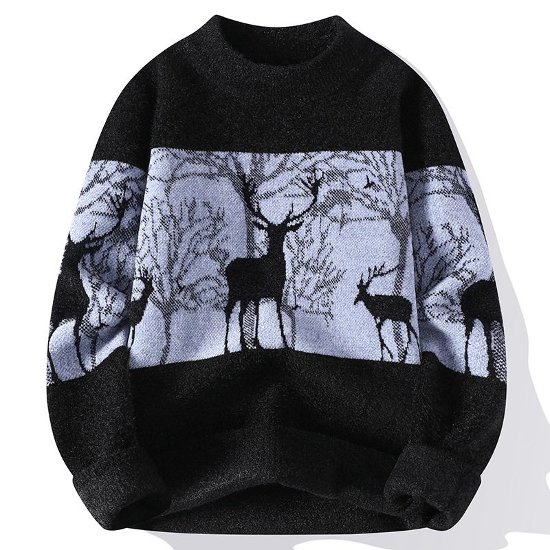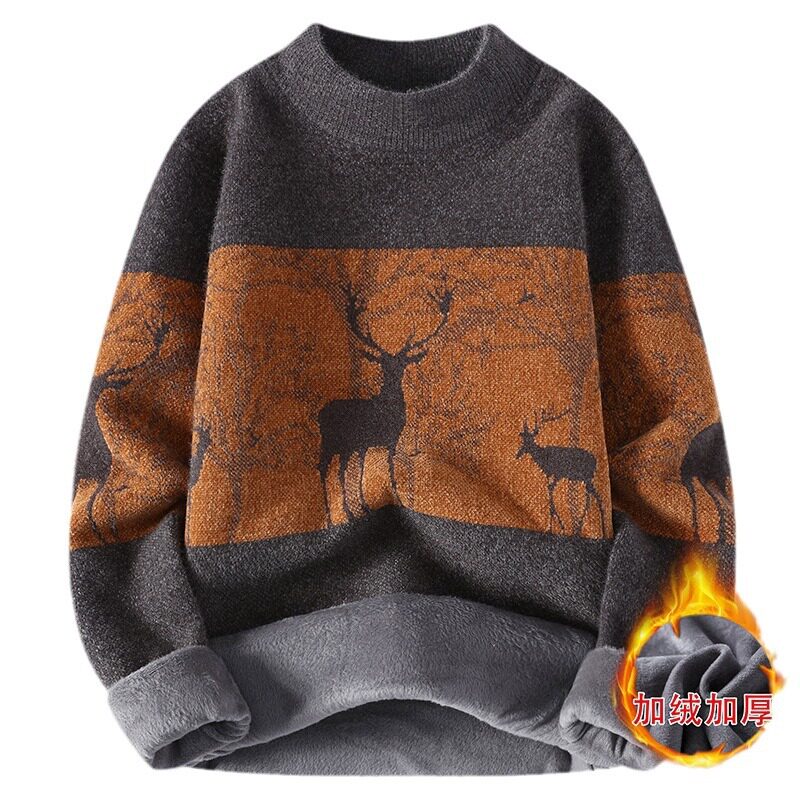 青少年毛衣男士秋冬季加绒加厚内搭打底衫初中高中学生保暖上衣服