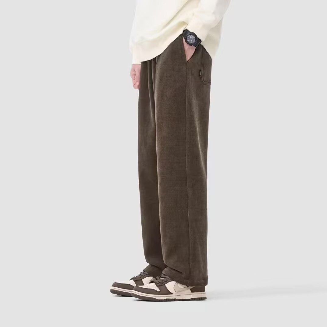 秋冬季灯芯绒裤子男士加绒加厚宽松直筒阔腿垂感运动休闲卫裤男款