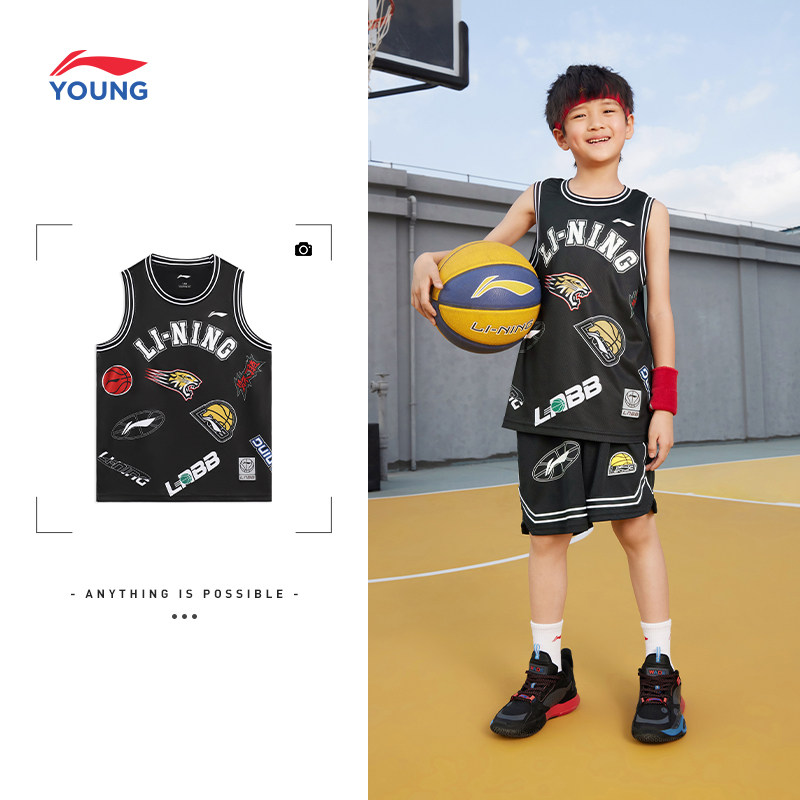 李宁儿童宽松篮球服训练比赛运动套装男孩新款夏季男童装夏装衣服