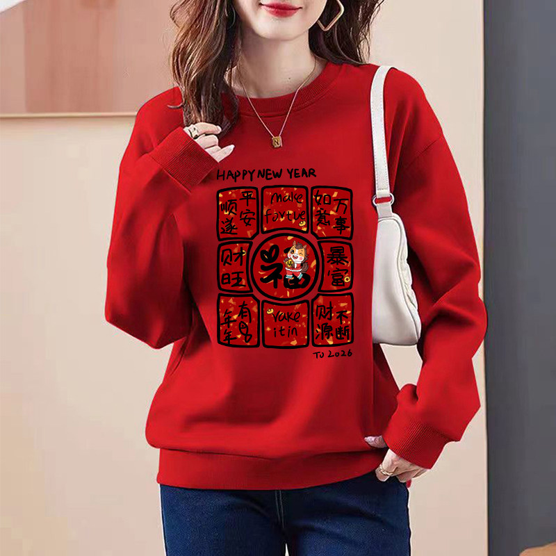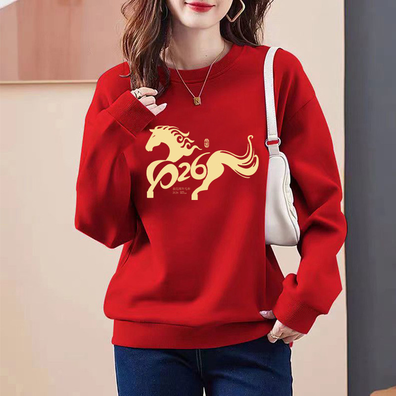 2026属马本命年红色卫衣女款秋冬季新款爆款高端马年衣服加绒上衣
