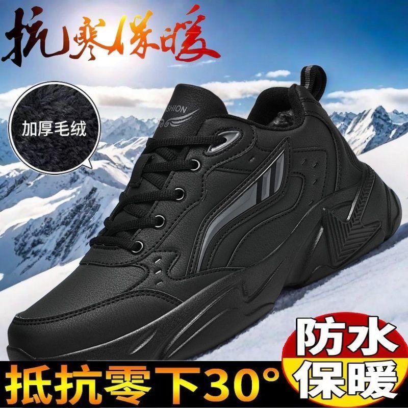 李宇新运动鞋男款秋冬季加绒牛筋底跑步鞋青少年学生休闲保暖棉鞋
