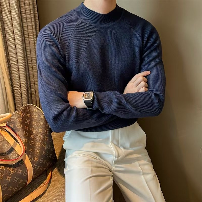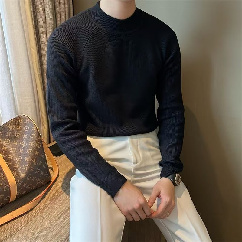半高领毛衣男款士秋冬季加大加厚保暖修身中领黑色针织打底衫内搭