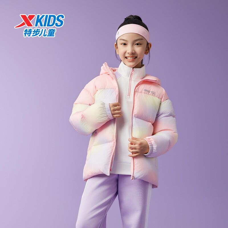 特步童装女童厚款羽绒服儿童拼接外套2026秋冬新款大童防寒服冬装