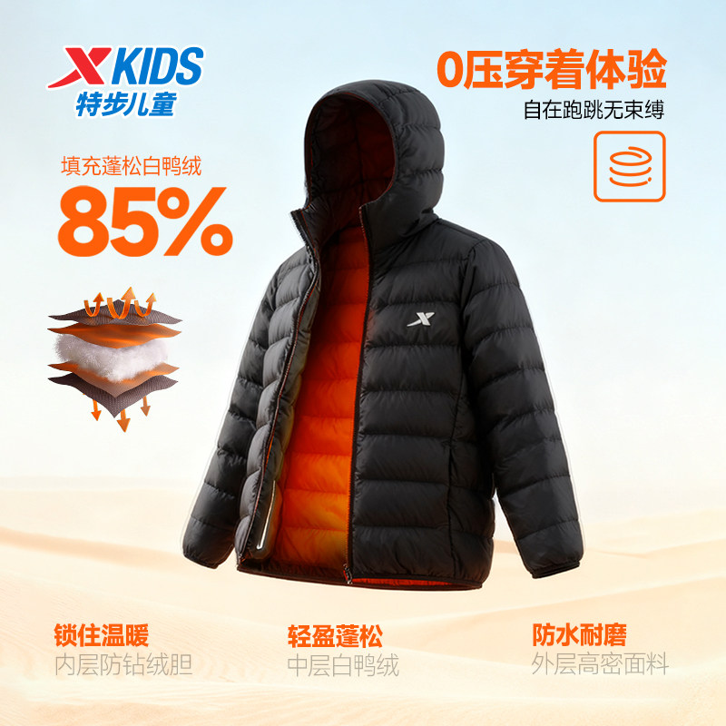特步童装儿童轻薄款羽绒服男童外套2026年秋冬新款大童防寒服冬装