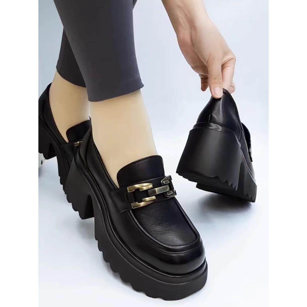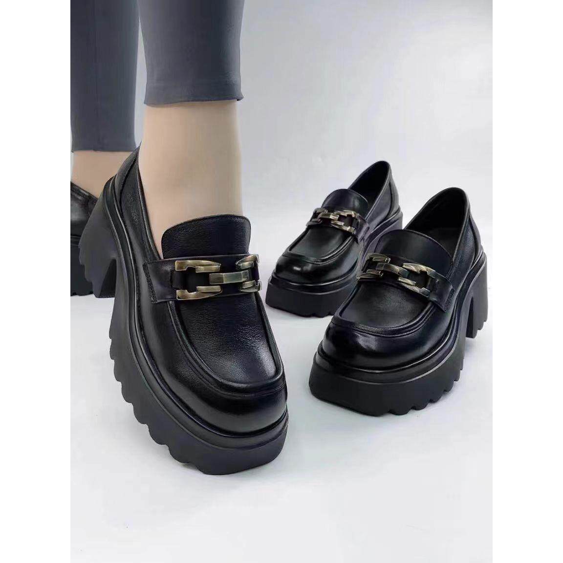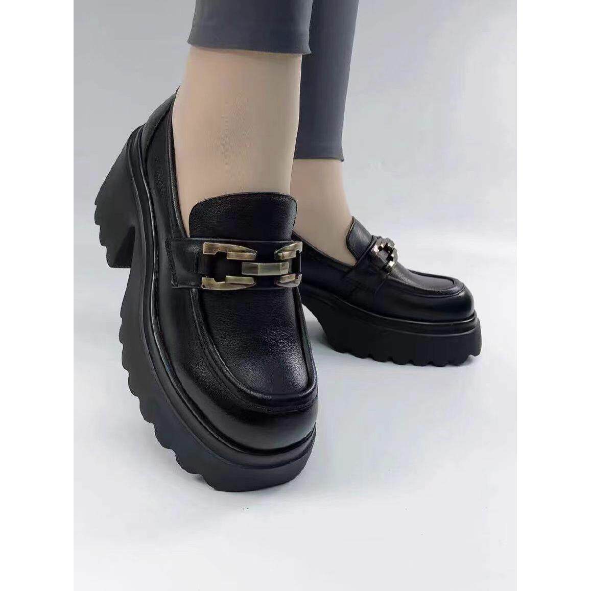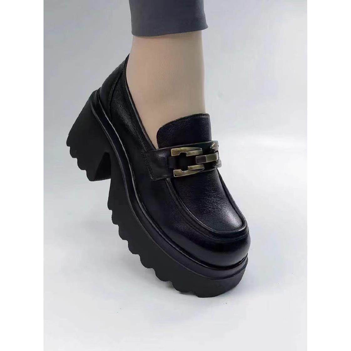 正品鞋真皮厚底单鞋女2025春秋新款英伦风小皮鞋软底一脚蹬乐福鞋