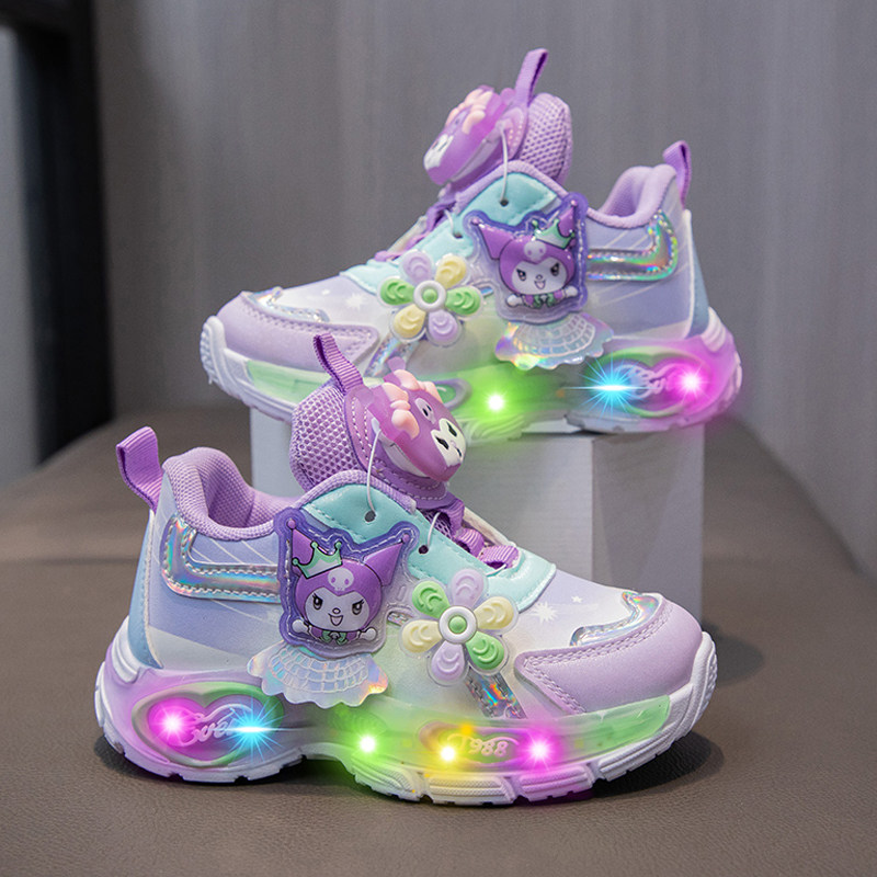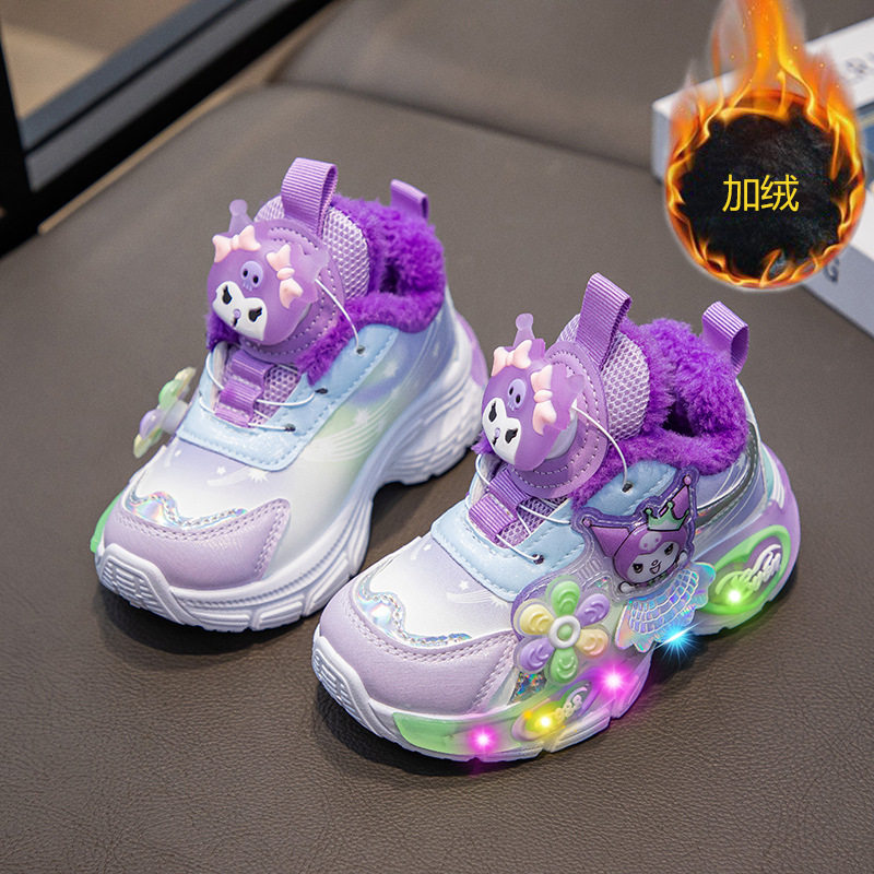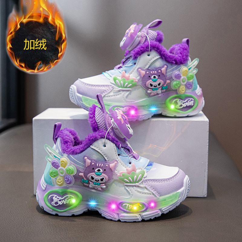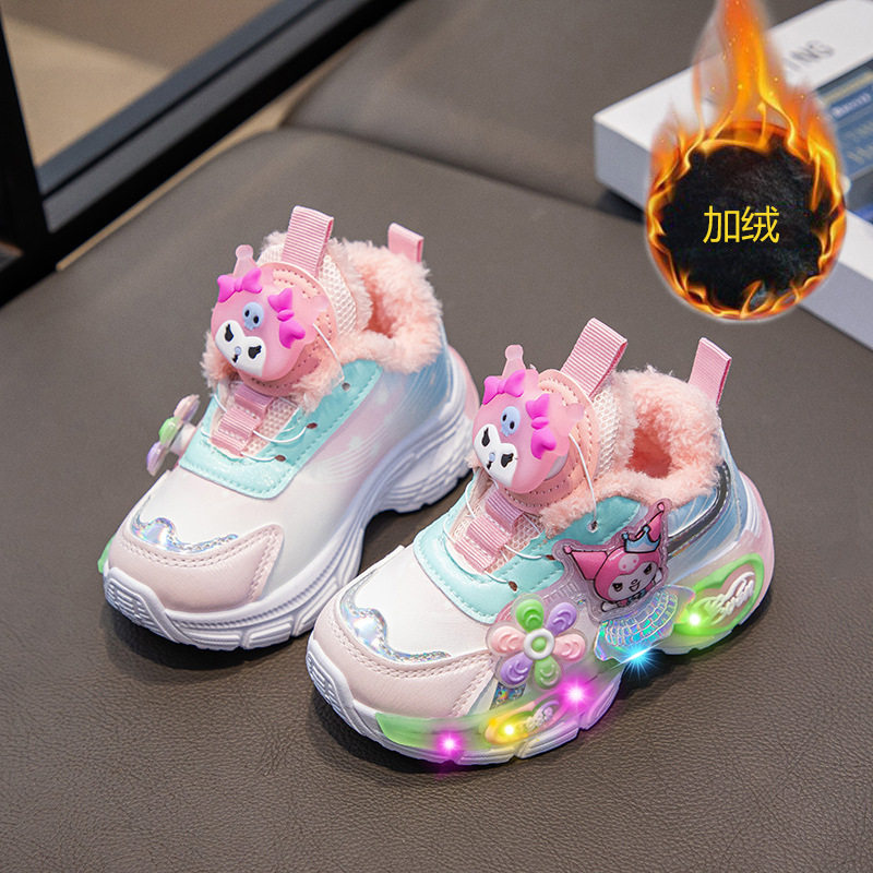 库洛米儿童运动鞋秋冬2025新款亮灯女童加绒保暖大棉鞋发光老爹鞋