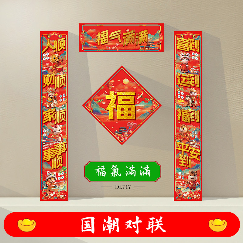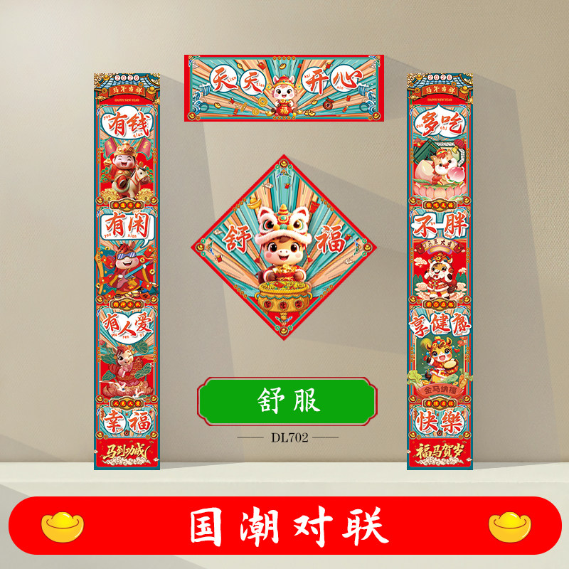 2026马年国潮对联春节搞笑个性创意春联过新年农村大尺寸门贴挂画