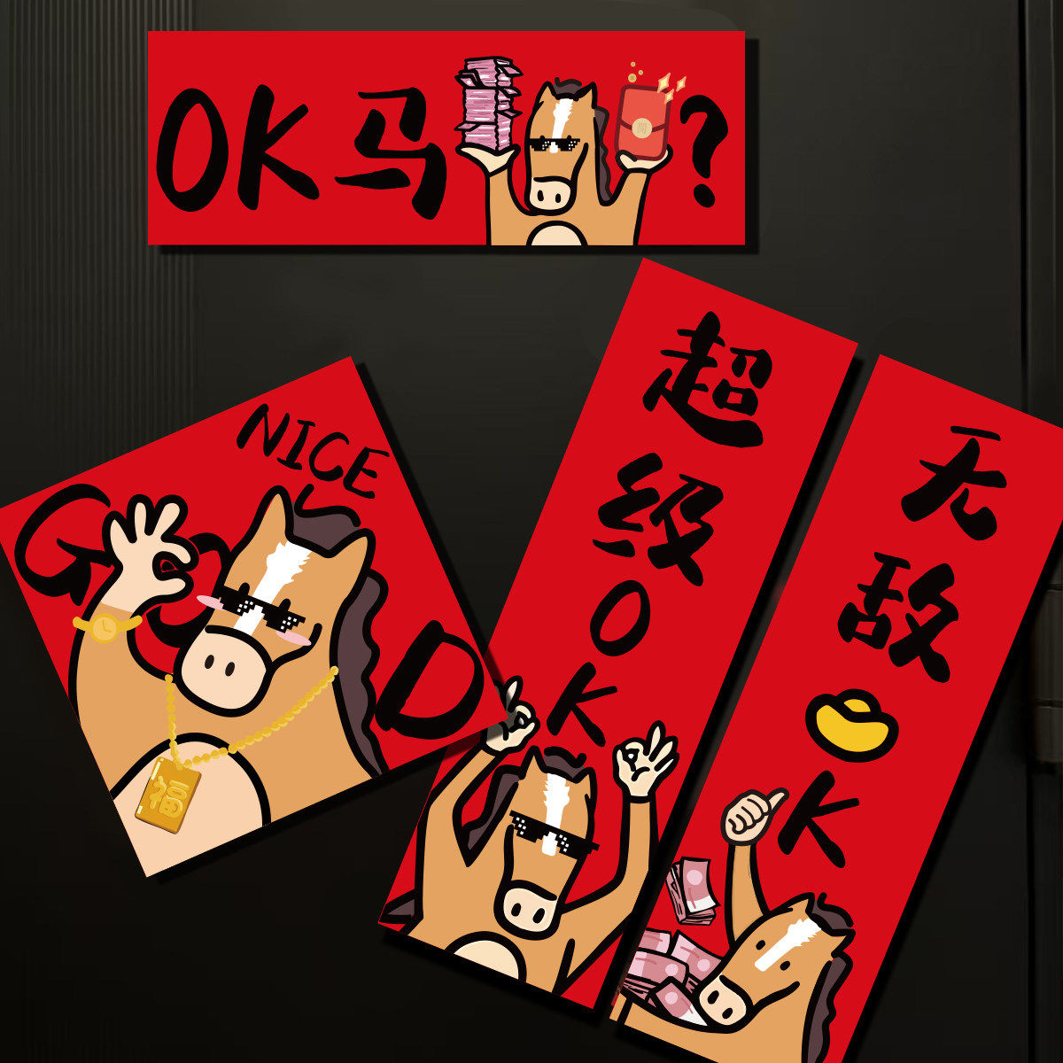 2026磁吸门贴新年全背磁吸对联入户门大尺寸春节创意卡通马年春联