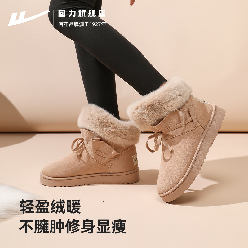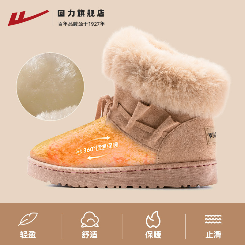 311线报网描述:回力旗舰店 荷叶边雪地靴女