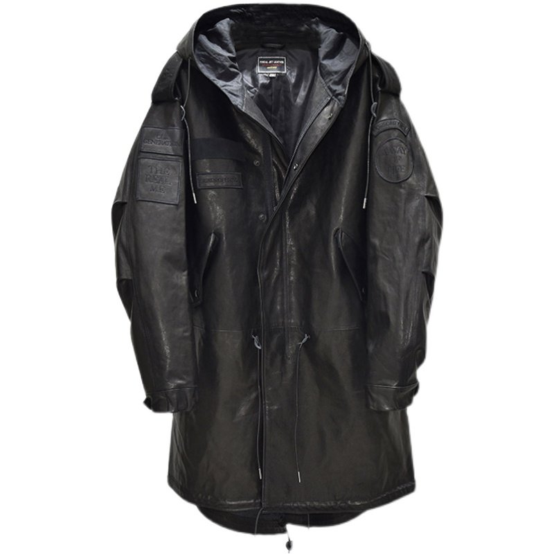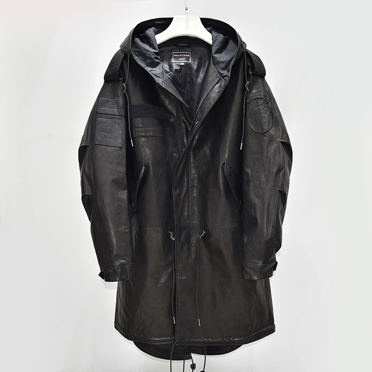 日系高档皮风衣男式植鞣绵羊皮外套中长款真皮皮衣宽松大码皮大衣