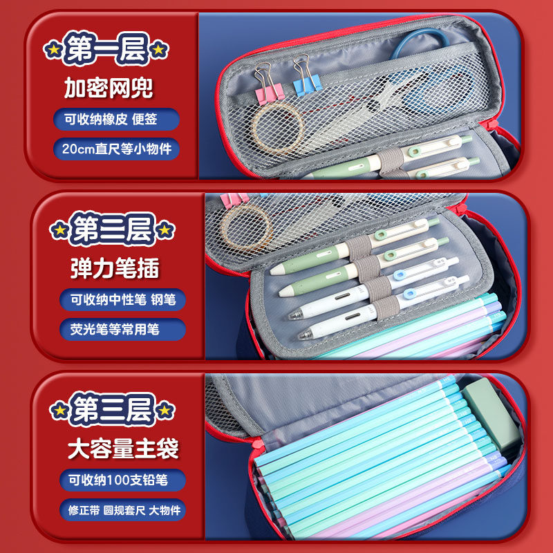 晨光文具英伦风笔袋男孩子小学生文具盒2024新款男孩款女童一年级文具袋收纳袋铅笔盒大容量初中学生用帆布
