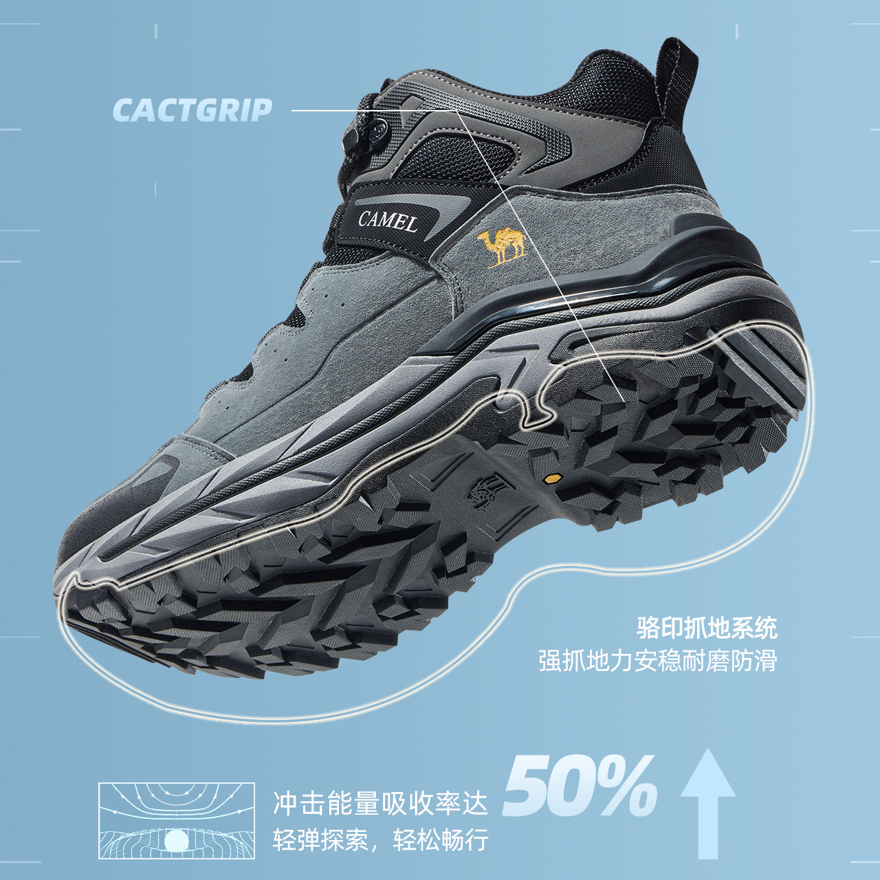 骆驼户外登山鞋2025冬季新款男鞋耐磨防滑徒步鞋高帮厚底运动鞋女