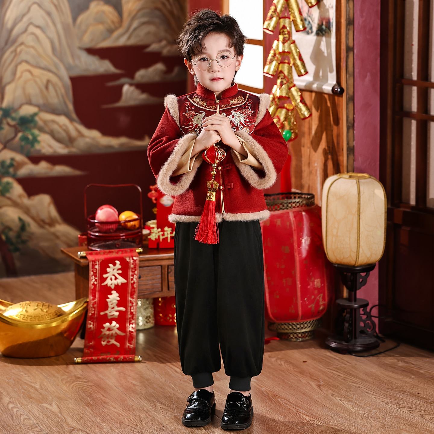 男童拜年服冬装加厚2026新款中国风儿童喜庆过年唐装男孩新年套装