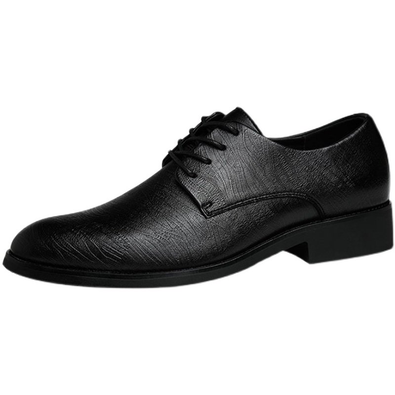 冬季尖头皮鞋男韩版软皮休闲鞋内增高软底男鞋子黑色英伦商务正装