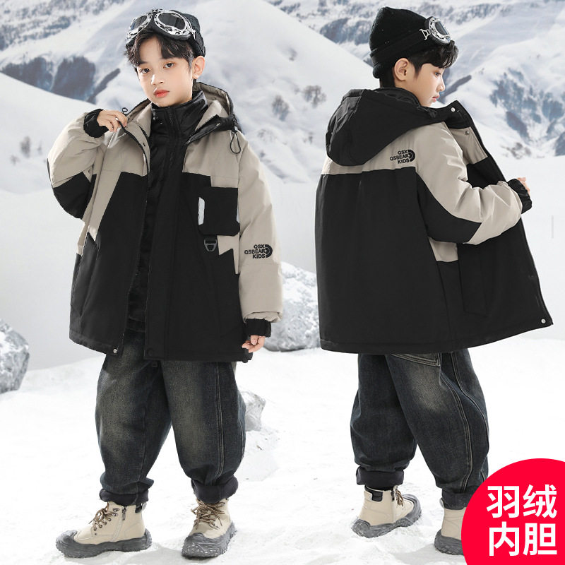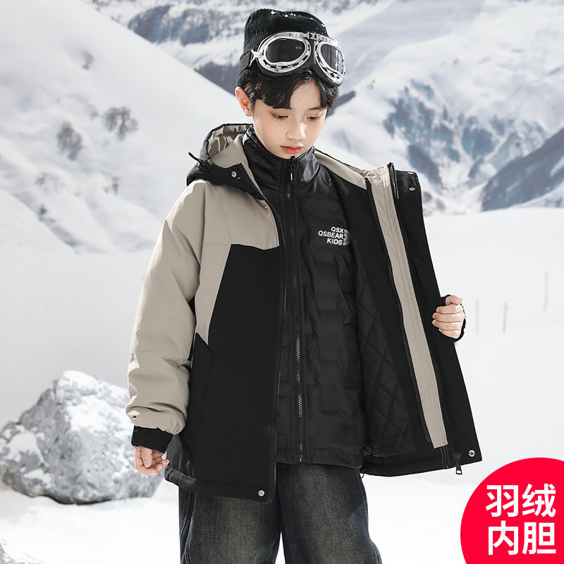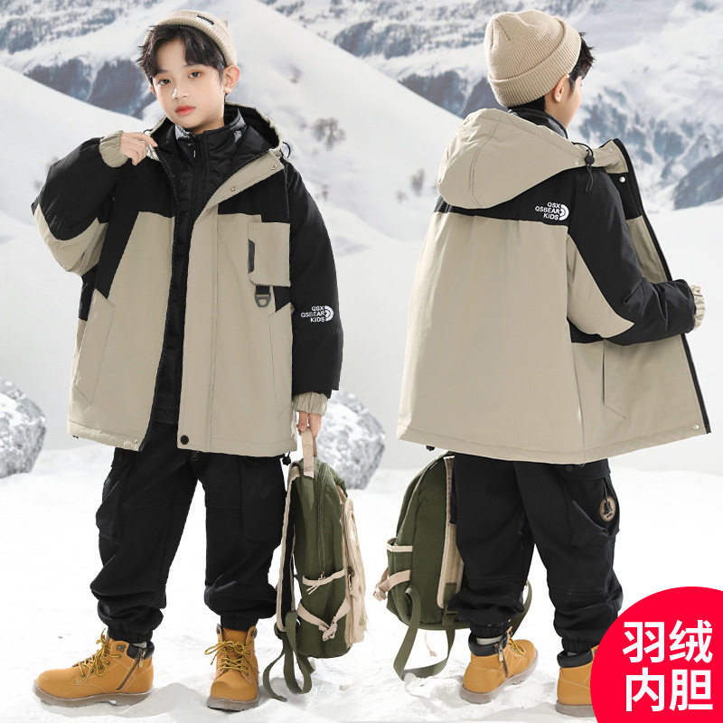 男童冲锋衣三合一羽绒可拆卸内胆中大童儿童初中生男孩冬装外套
