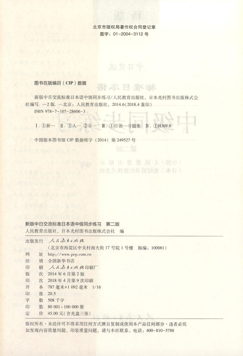 新版中日交流标准日本语 中级同步练习册 第二版 含3张光盘 中国人学日语教程 国人学日本语教材辅助练习册 张厚泉人民教育出版社