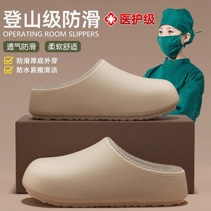 医用手术室棉拖鞋女款2025新款冬季外穿防滑加绒保暖家居防水棉鞋