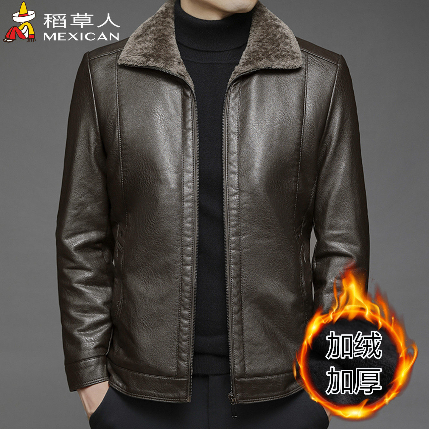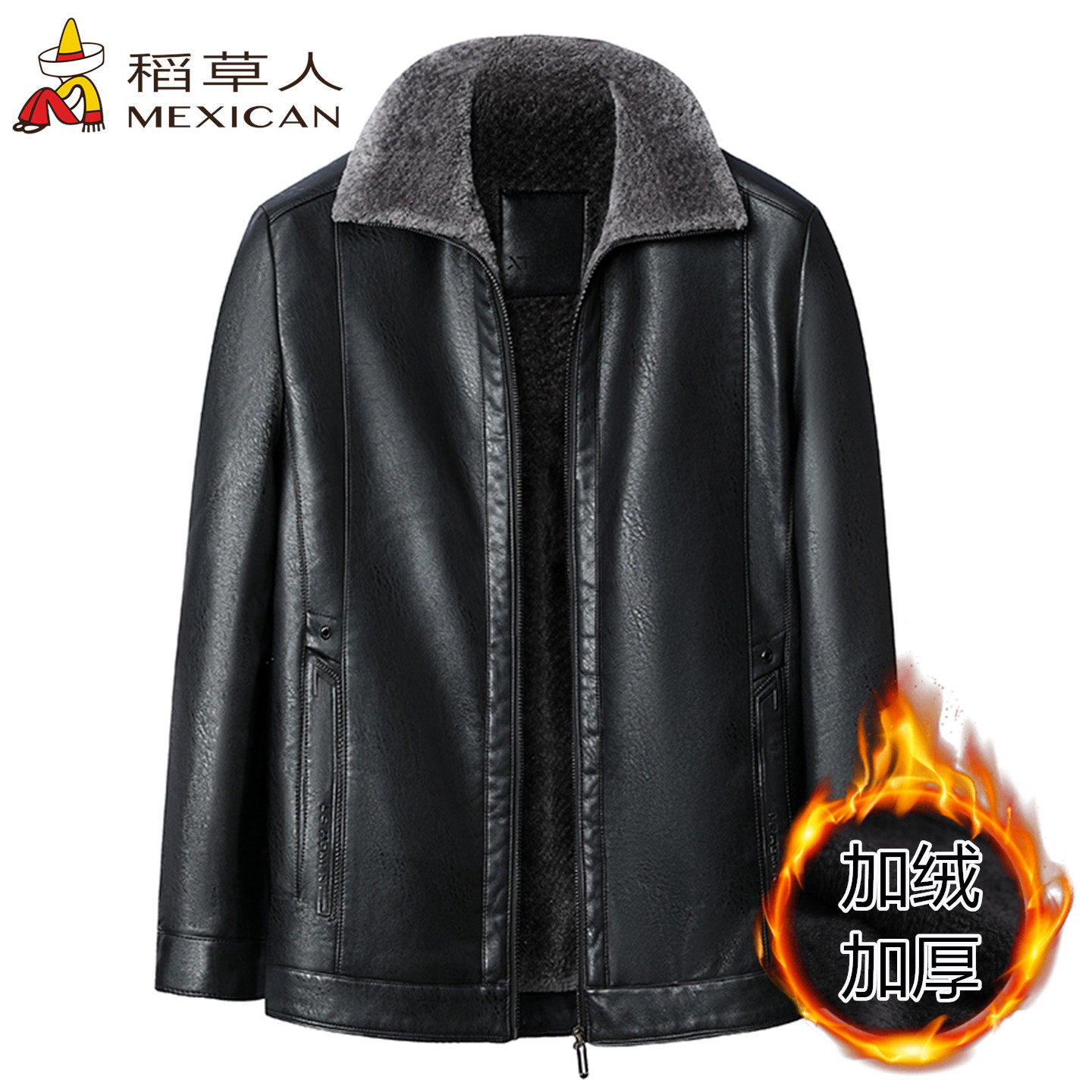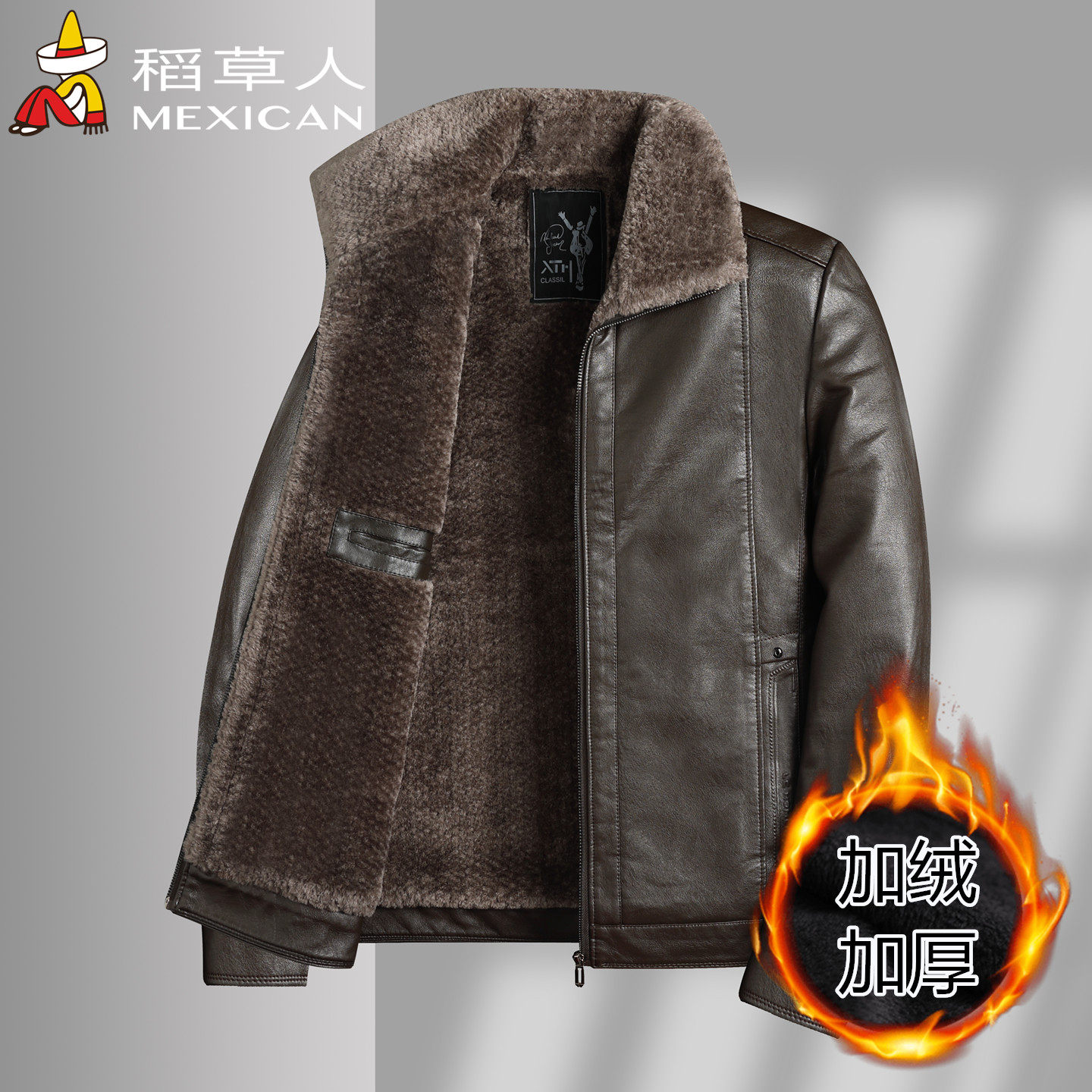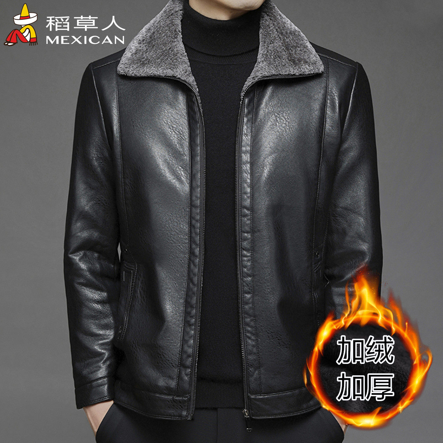 稻草人真皮皮衣男士海宁头层绵羊皮外套加绒加厚中老年翻领皮夹克