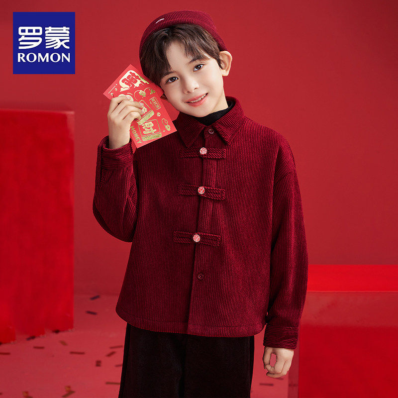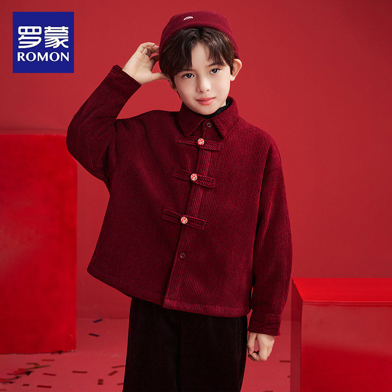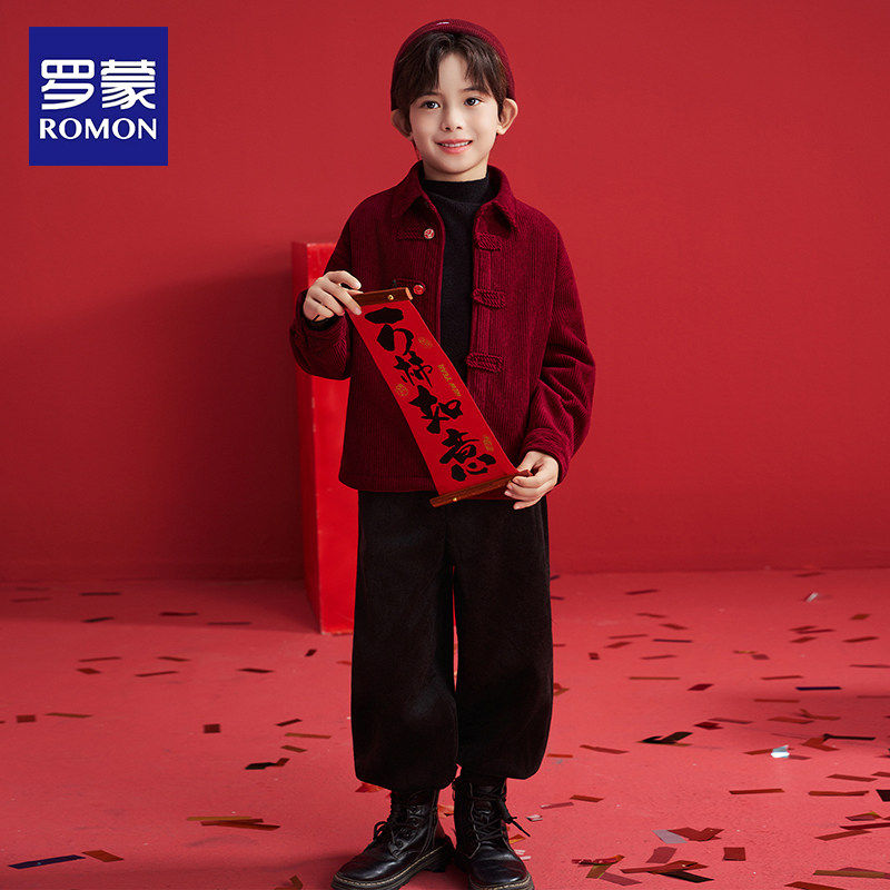 罗蒙男童新中式拜年服本命年2026新年外套加绒过年喜庆马年套装