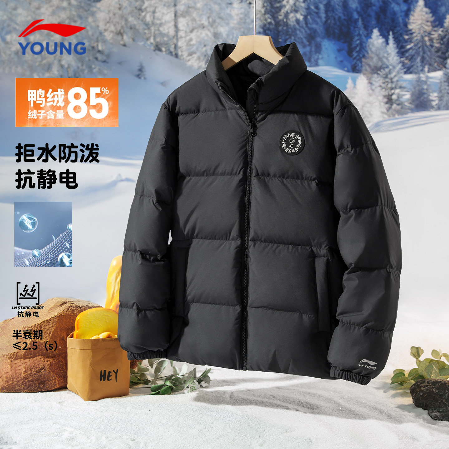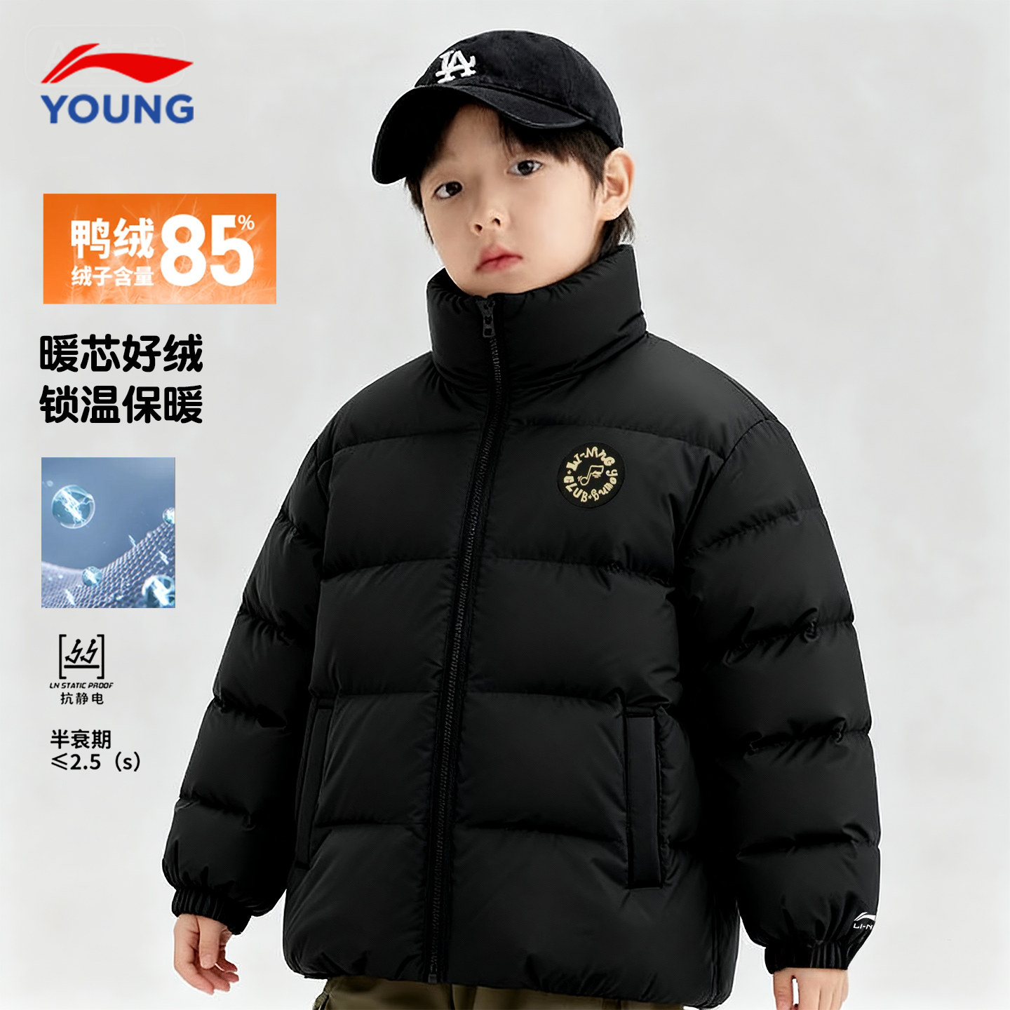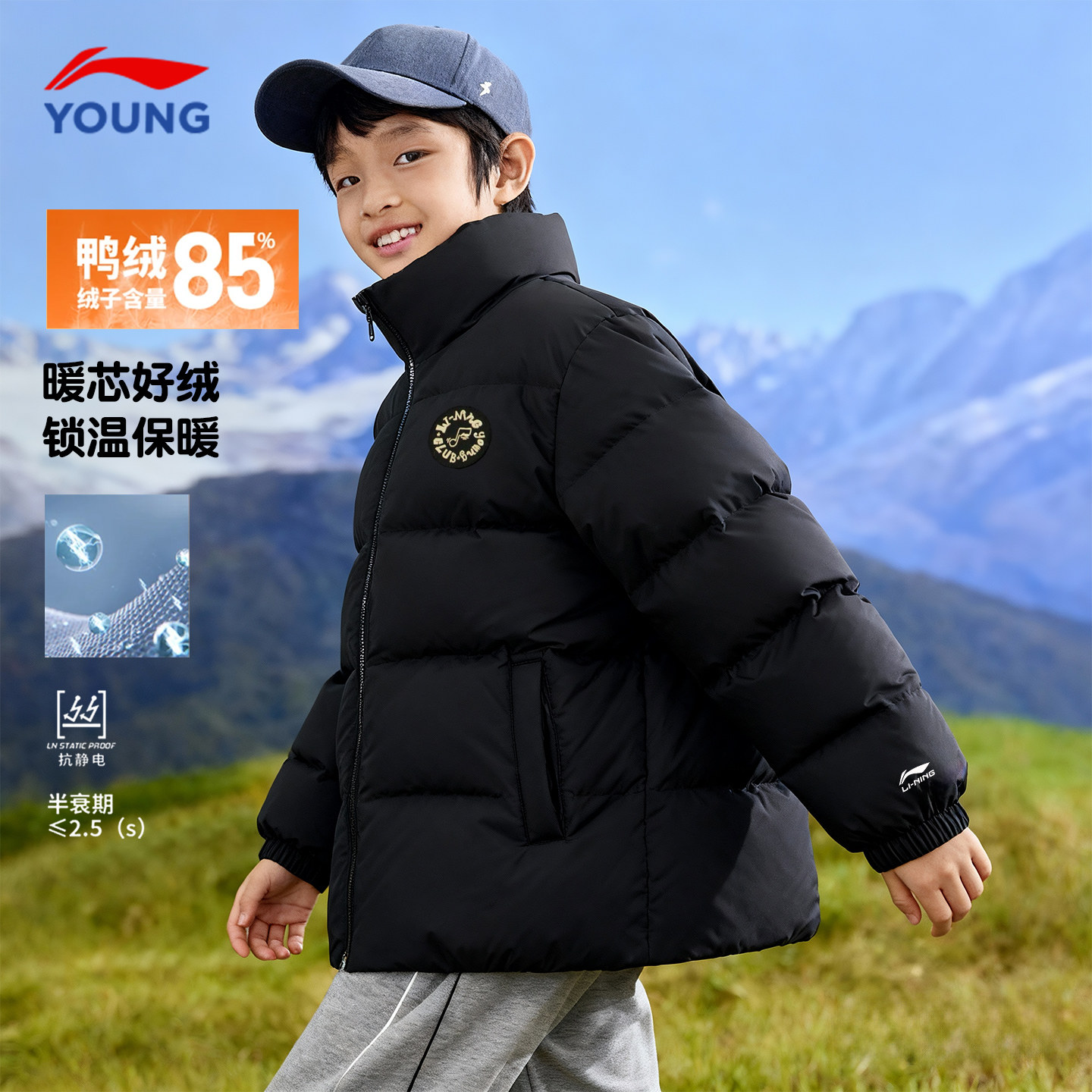 李宁儿童羽绒服男童正品26新款冬季中大童青少年商场同款黑色外套