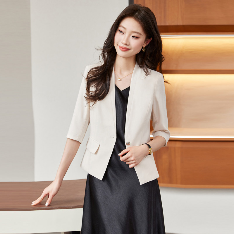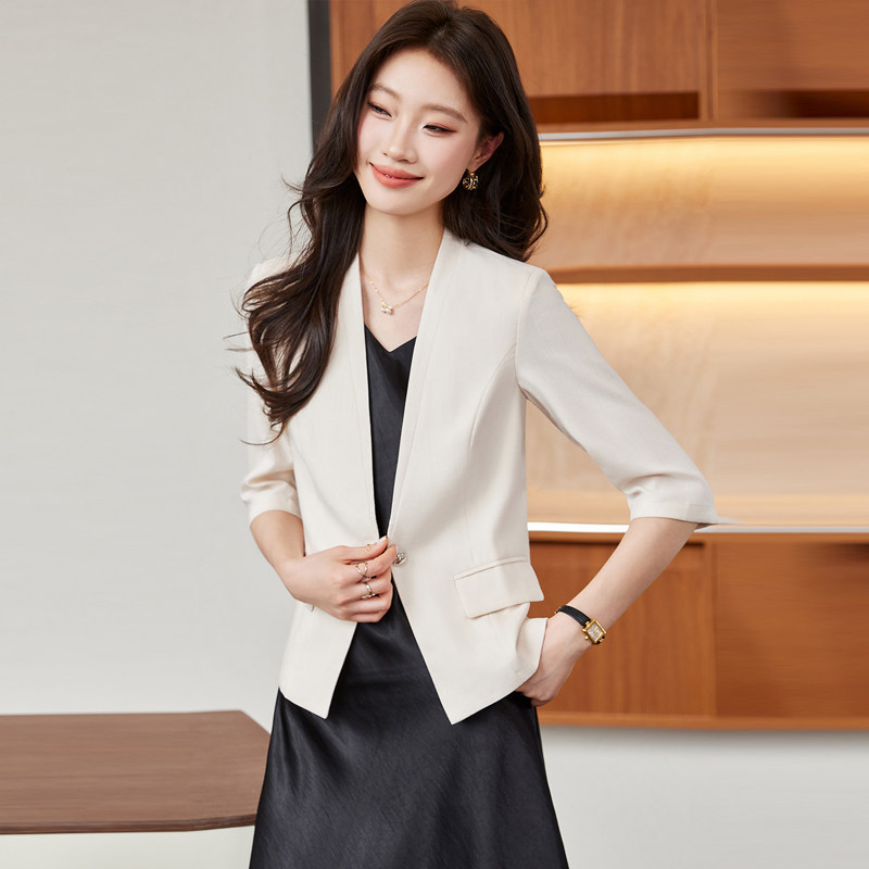 无领西装外套女小个子2026新款春夏时尚高级七分袖西服连衣裙套装