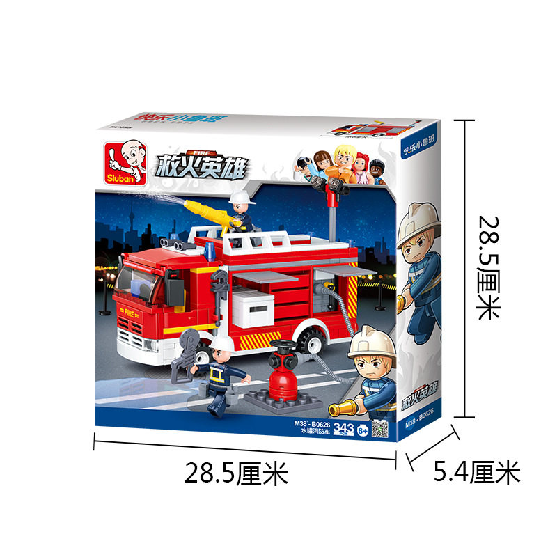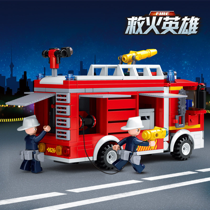小鲁班云梯消防车组装模型中国积木男孩拼装积木拼插益智力玩具