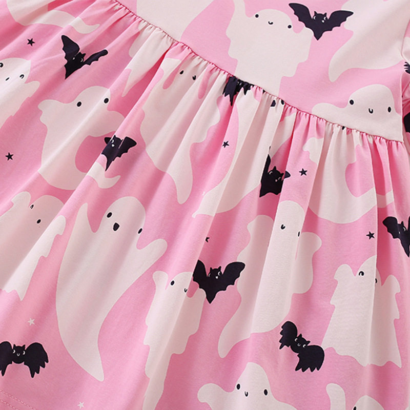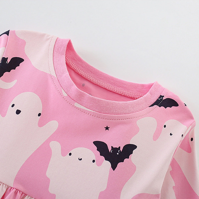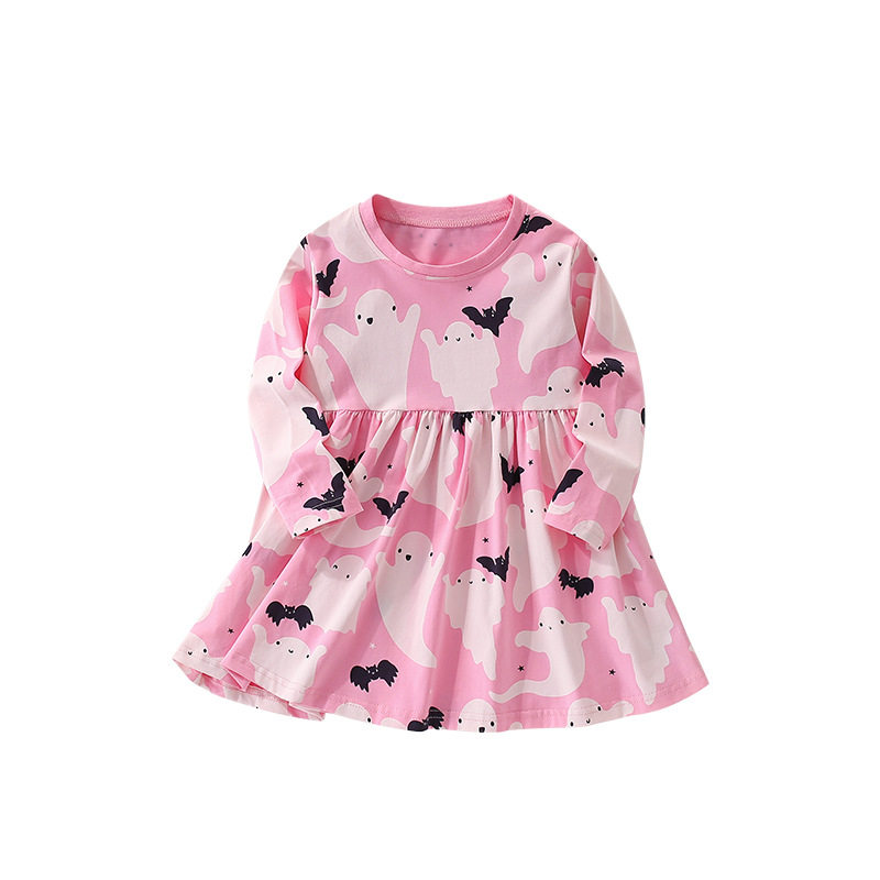 女童长袖连衣裙春秋新款女孩圆领印花纯棉公主裙洋气好看儿童裙子