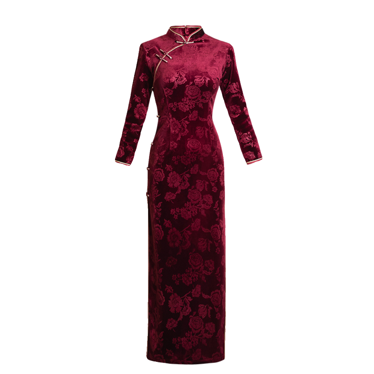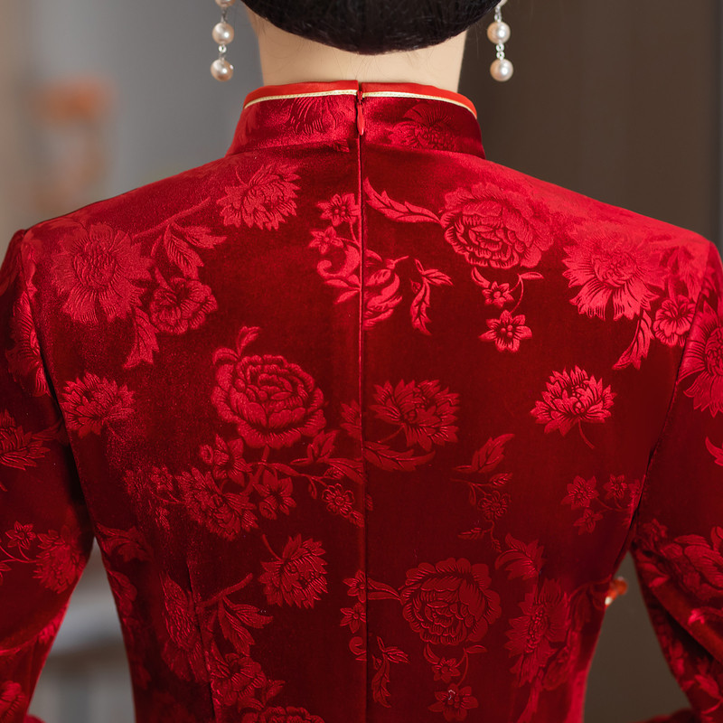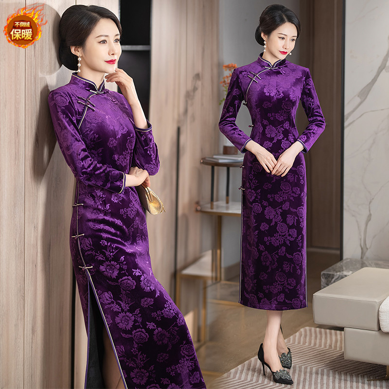 冬季新款加绒加厚旗袍长款女走秀改良版复古连衣裙舞台高级感礼服