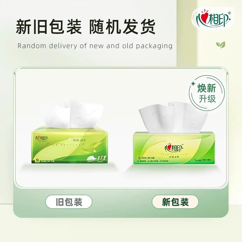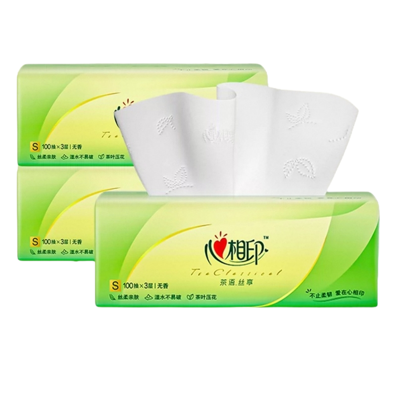 心相印茶语丝享抽纸100抽*3包家用大包卫生纸餐巾纸面巾纸