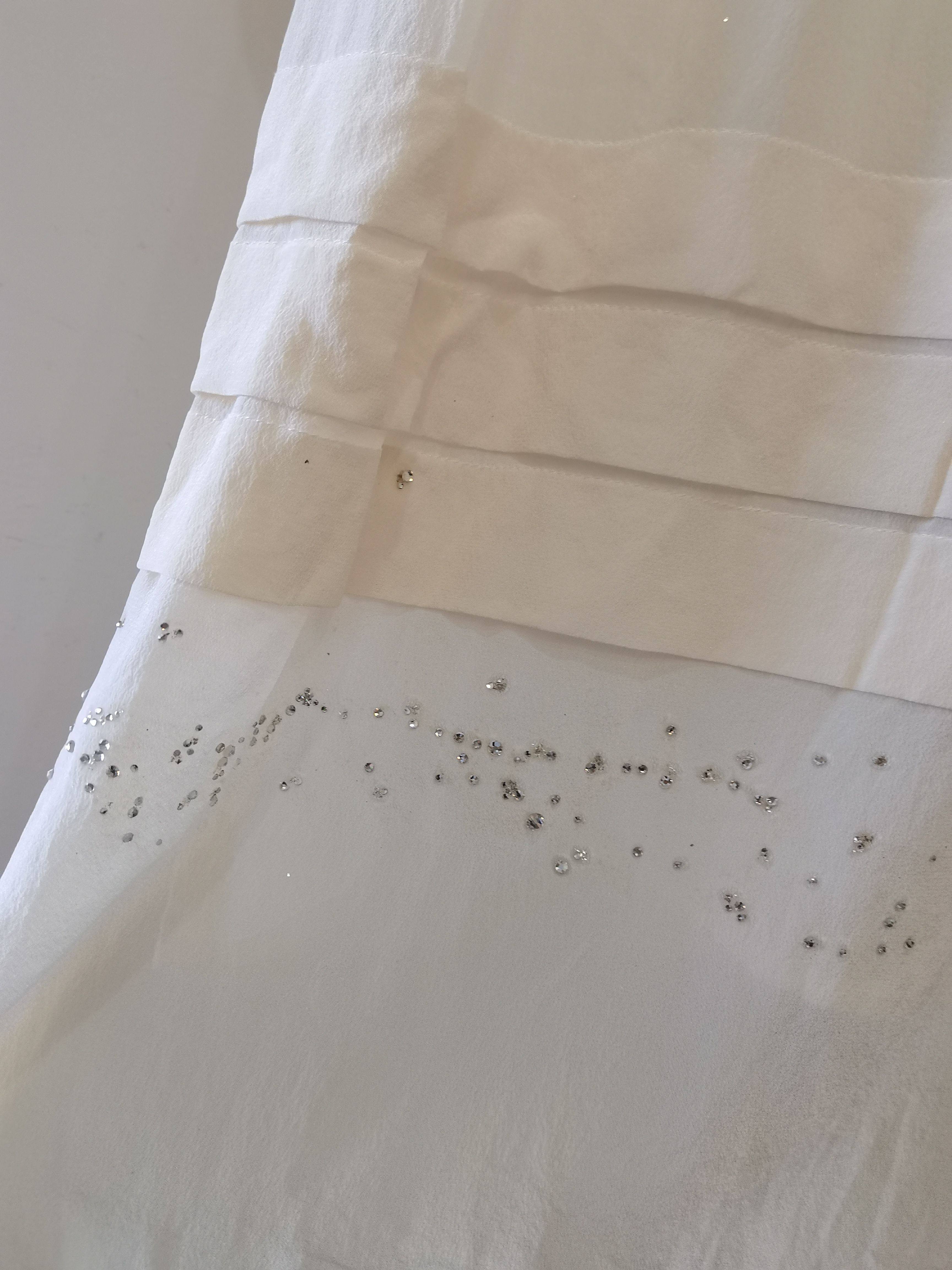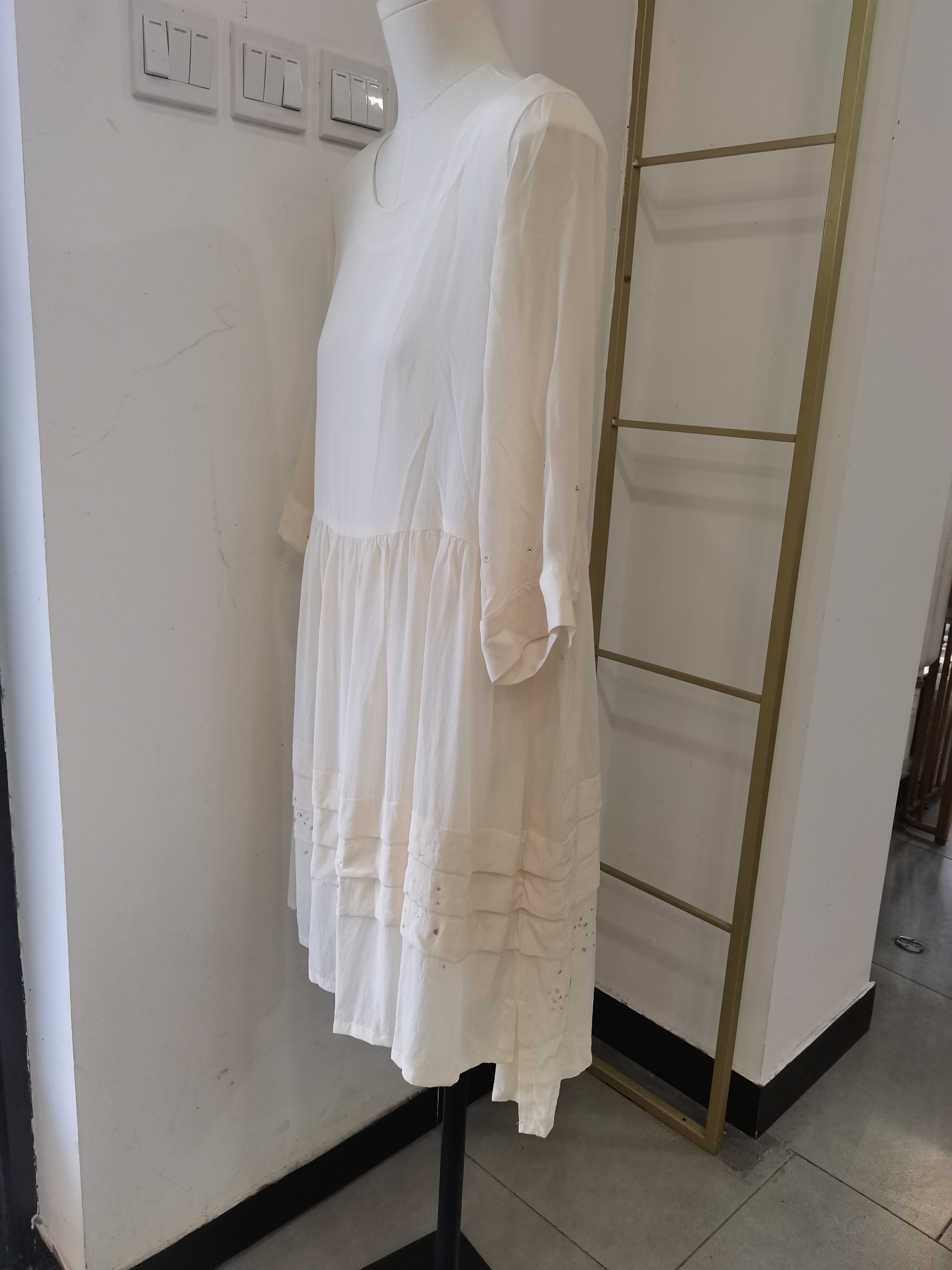 真丝桑蚕丝度假风长袖白色碎花连衣裙挂脖裙子长袖连衣裙女小香风