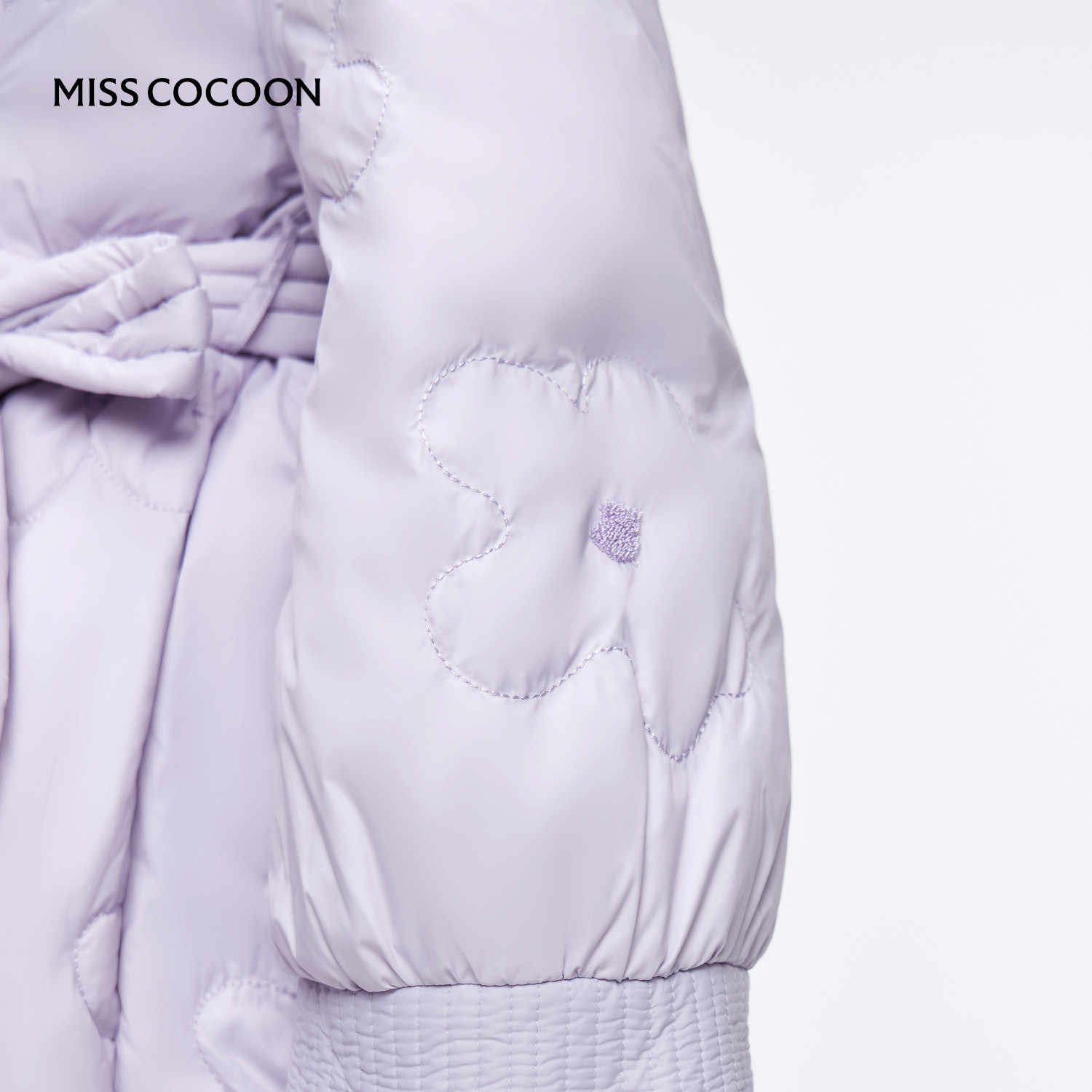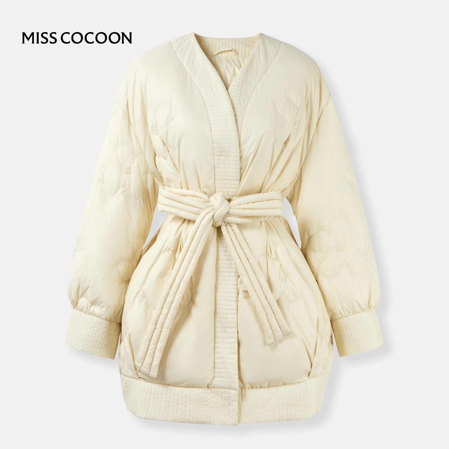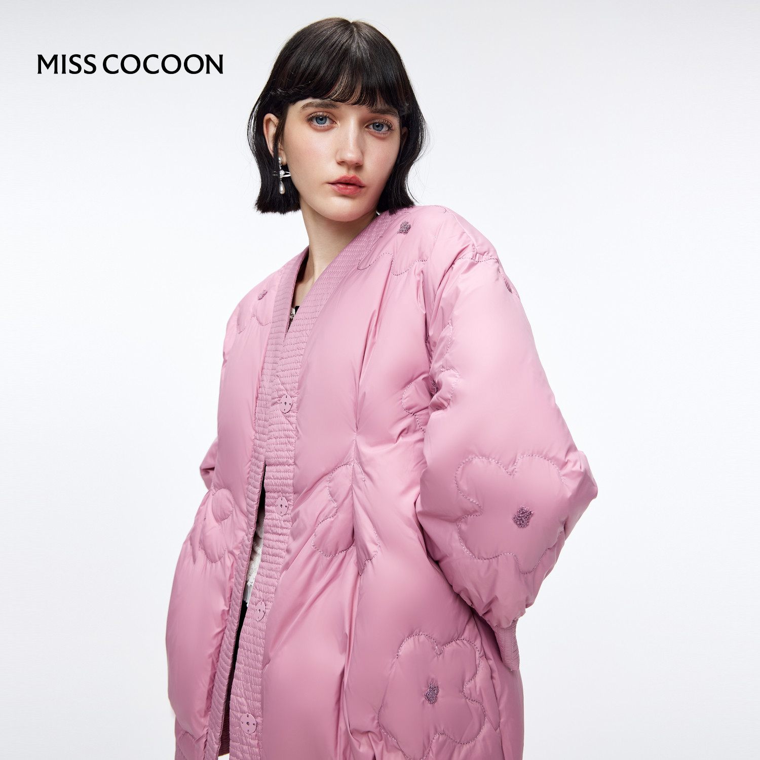 missCOCOON显瘦外套2023冬装新款女装开襟中长款收腰下摆羽绒服女