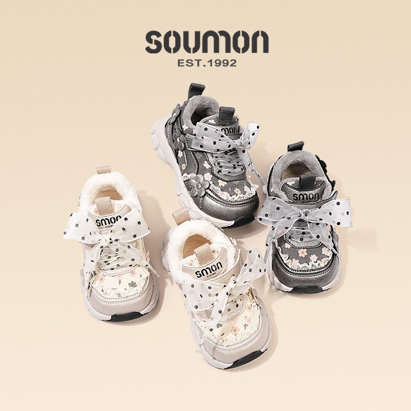 书萌童鞋儿童运动鞋丝带蝴蝶结公主鞋花朵可爱女童鞋冬季加绒棉鞋