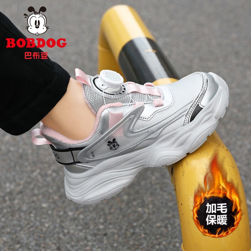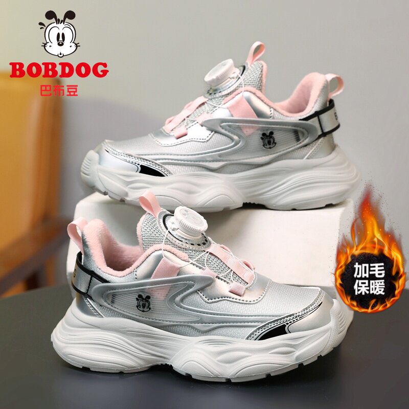 巴布豆冬季新款女童棉鞋加绒毛保暖二棉小女孩子软底冬天运动棉鞋