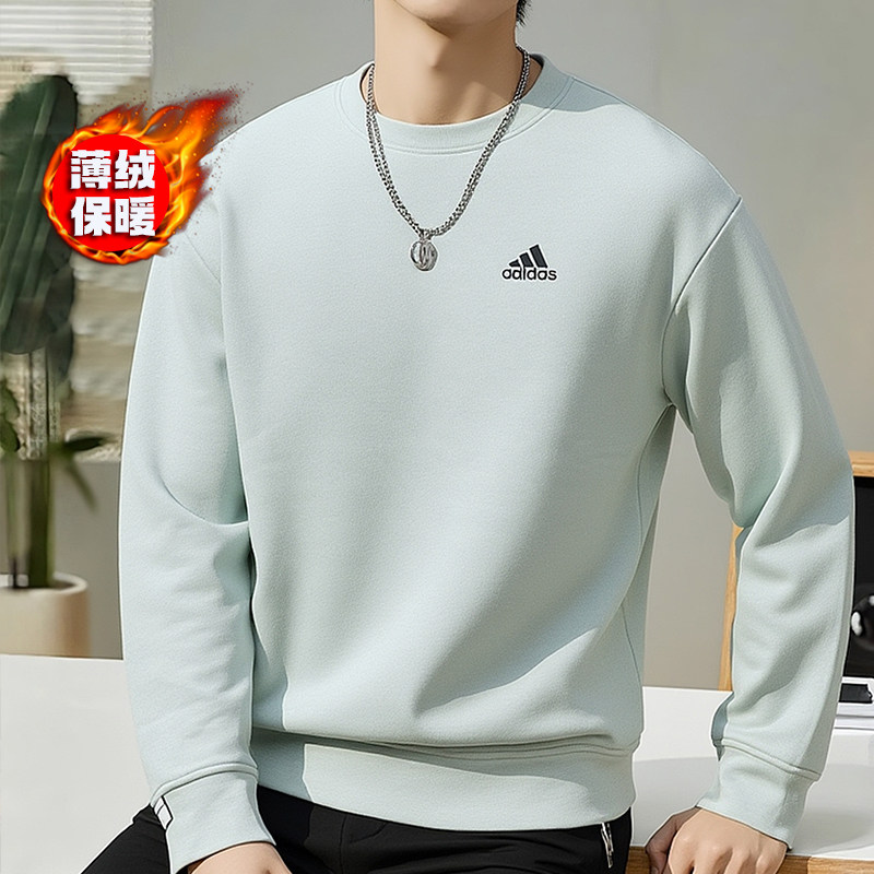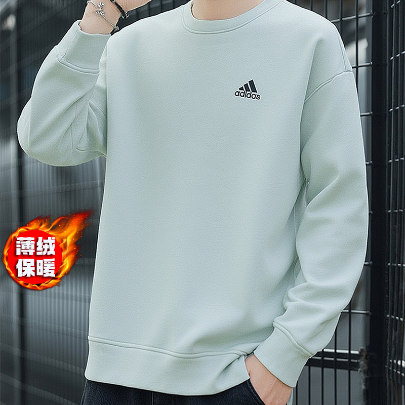阿迪达斯加绒卫衣男冬季新款绿色宽松简约打底衫男士休闲外套上衣