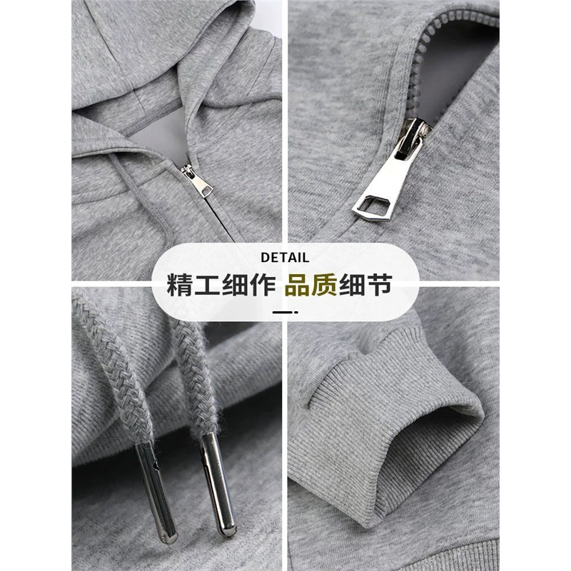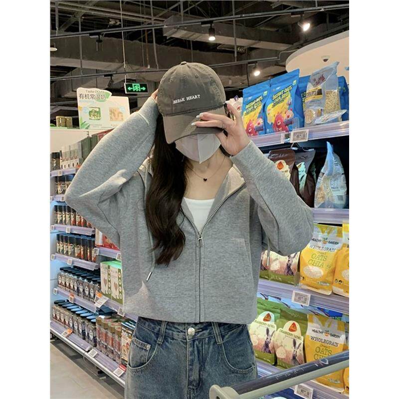 灰色短款连帽卫衣拉链外套女款秋修身小个子开衫薄款上衣秋冬穿搭