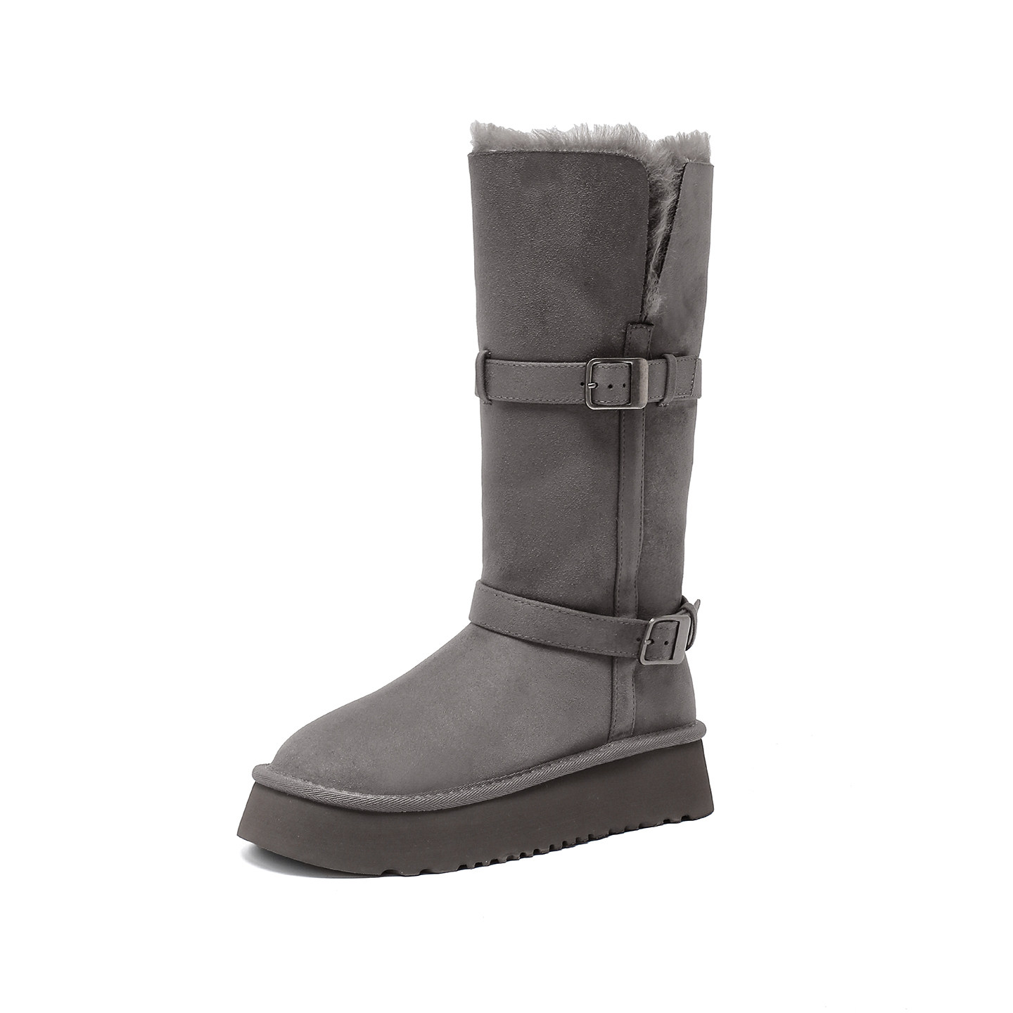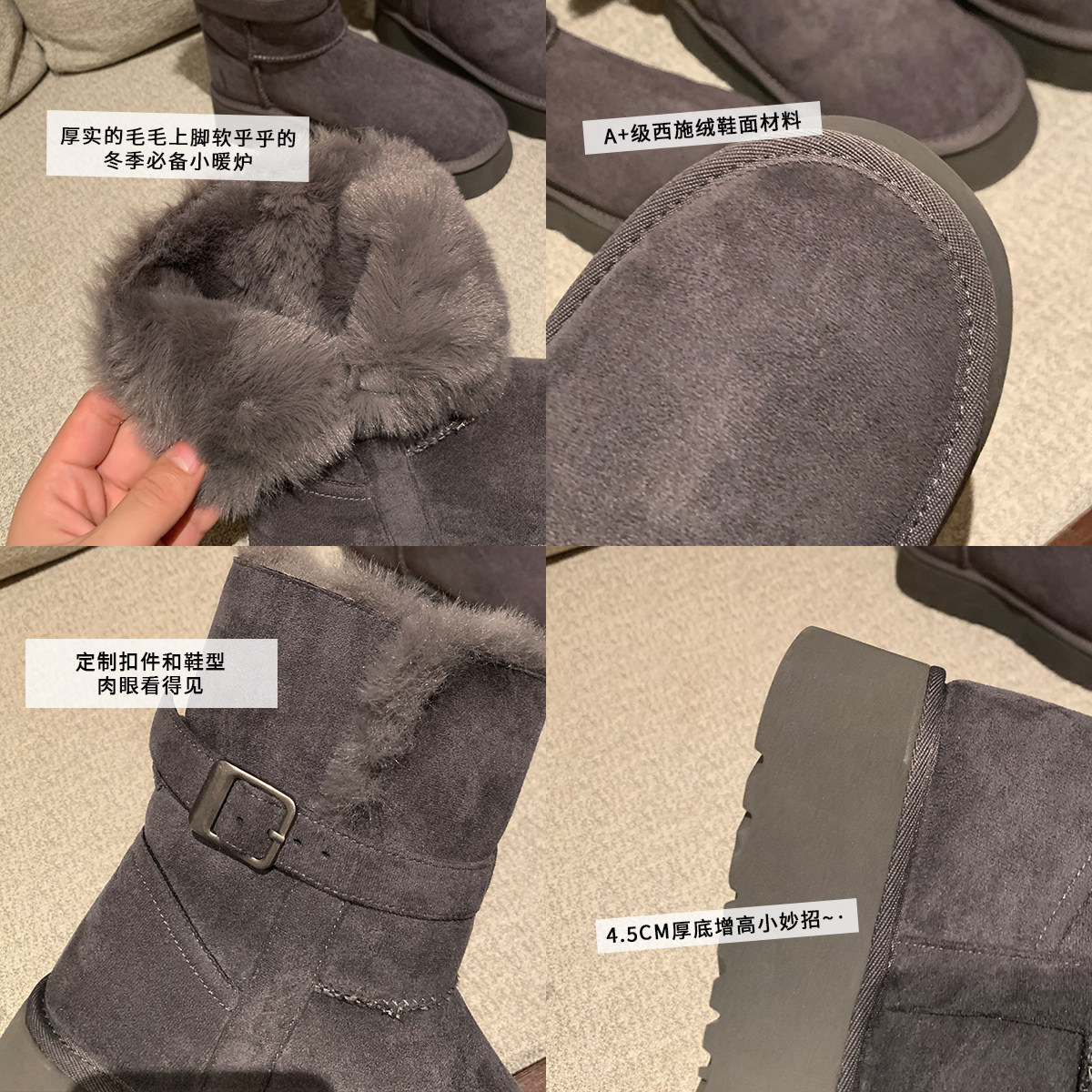 小个子厚底灰色长筒雪地靴女2026冬新款增高加绒加厚保暖东北棉鞋