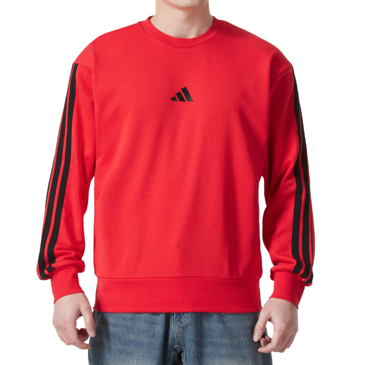 adidas 运动生活系列 宽松圆领套头长袖卫衣 男款 红色