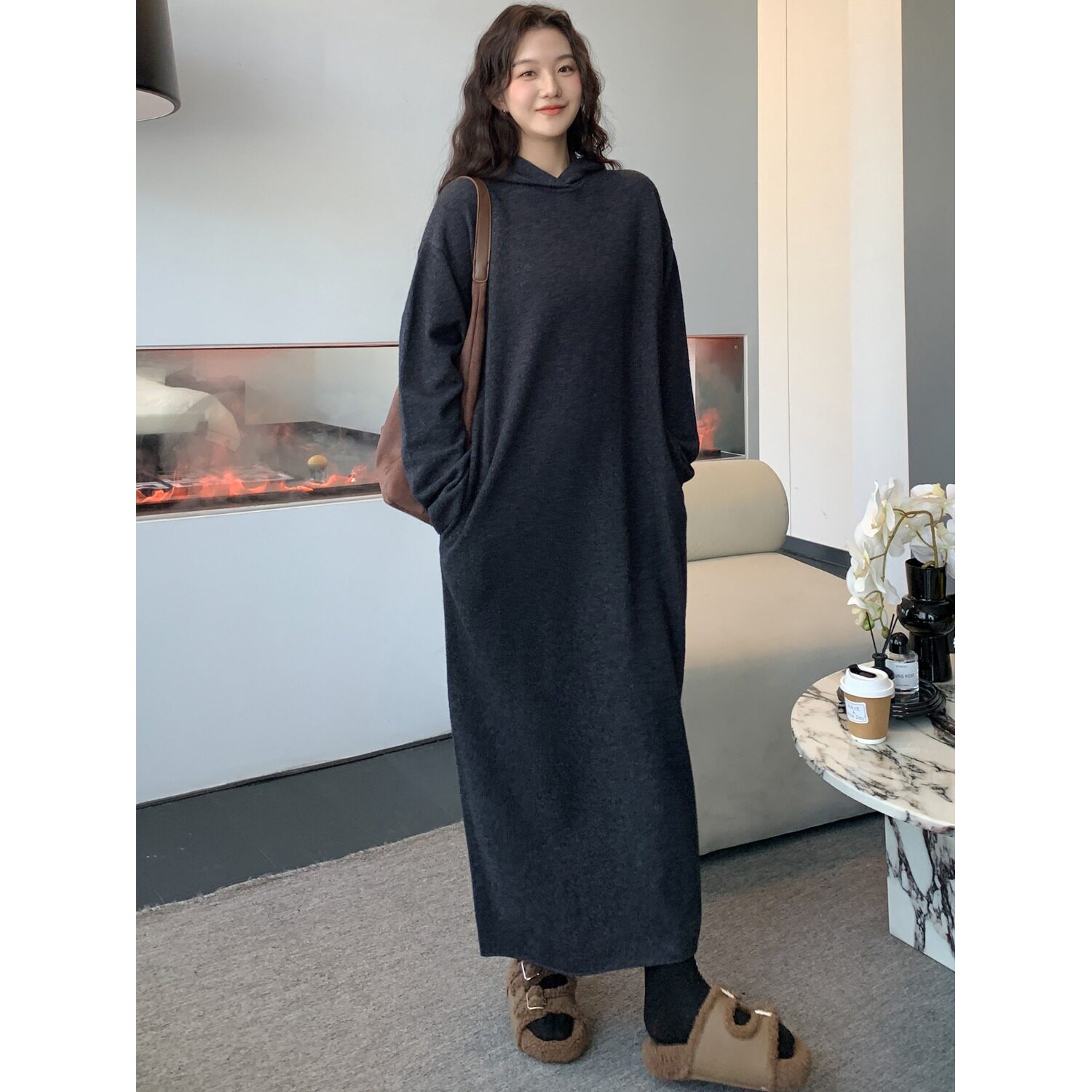 高级感叠穿连帽毛衣裙女秋冬季新款大码宽松显瘦长款过膝连衣裙潮