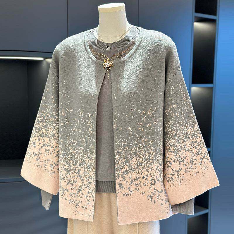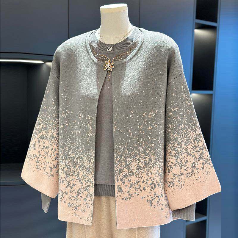时尚中老年针织衫套装女冬装新款上衣洋气大码妈妈装毛衣两件套