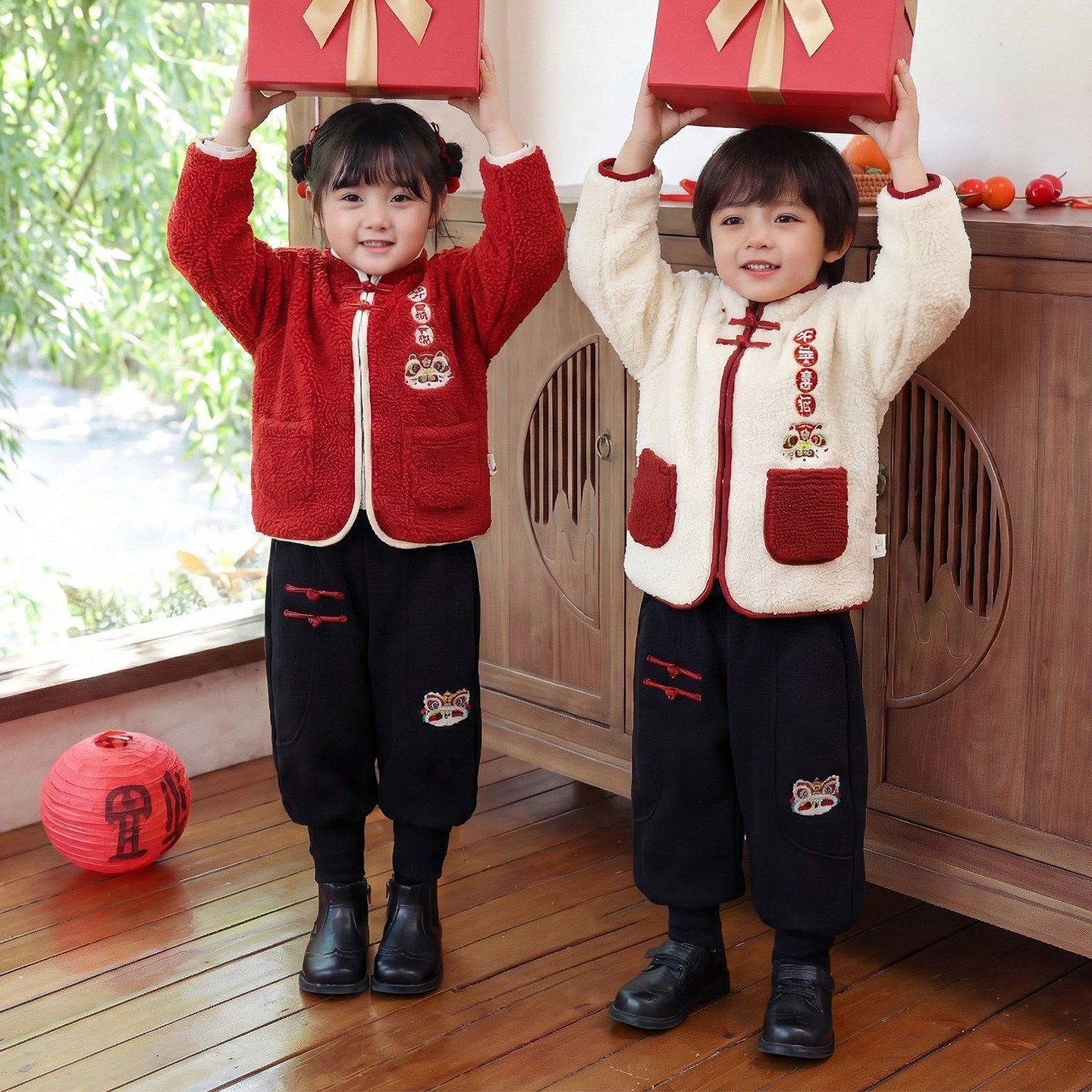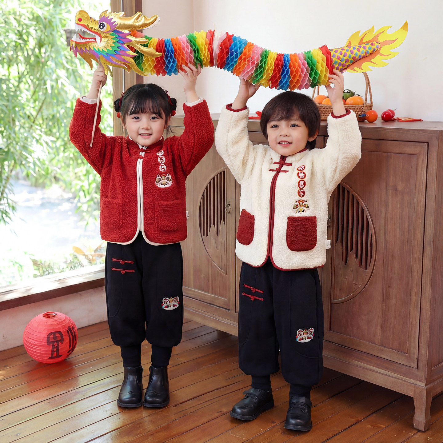 儿童拜年服男童拜冬年服红色过年唐装2026马年新款女童中国风外套