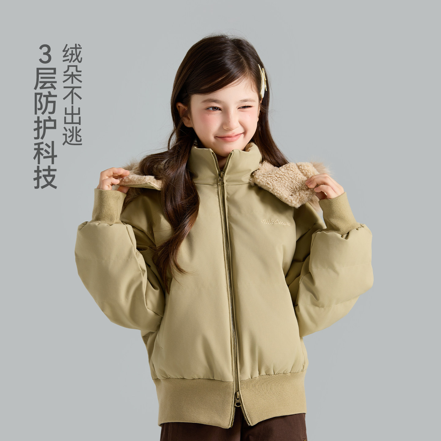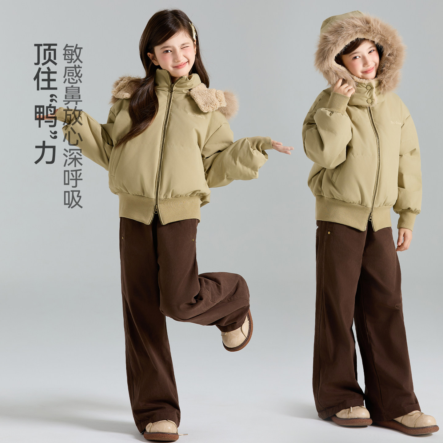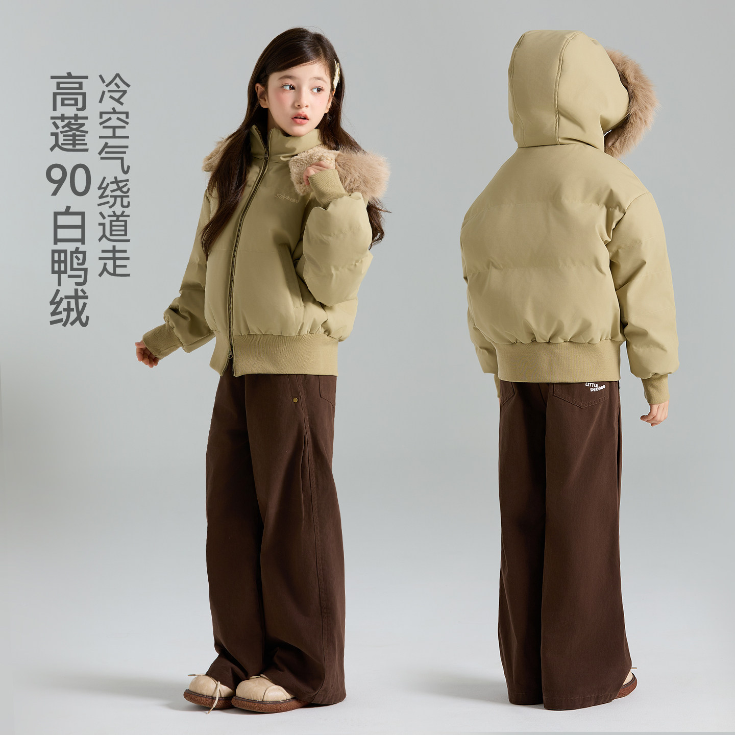 女童美式复古大毛领短款羽绒服2026冬装新款90白鸭绒防水保暖外套