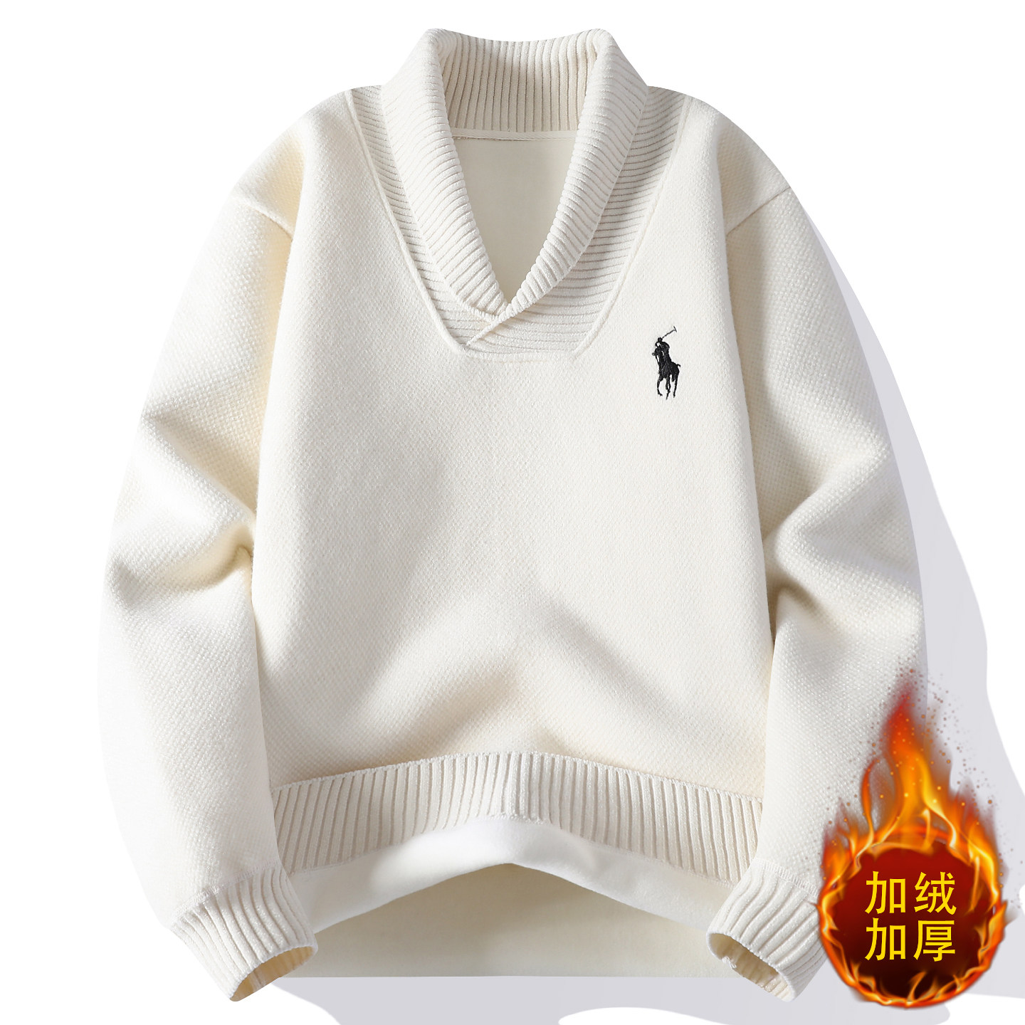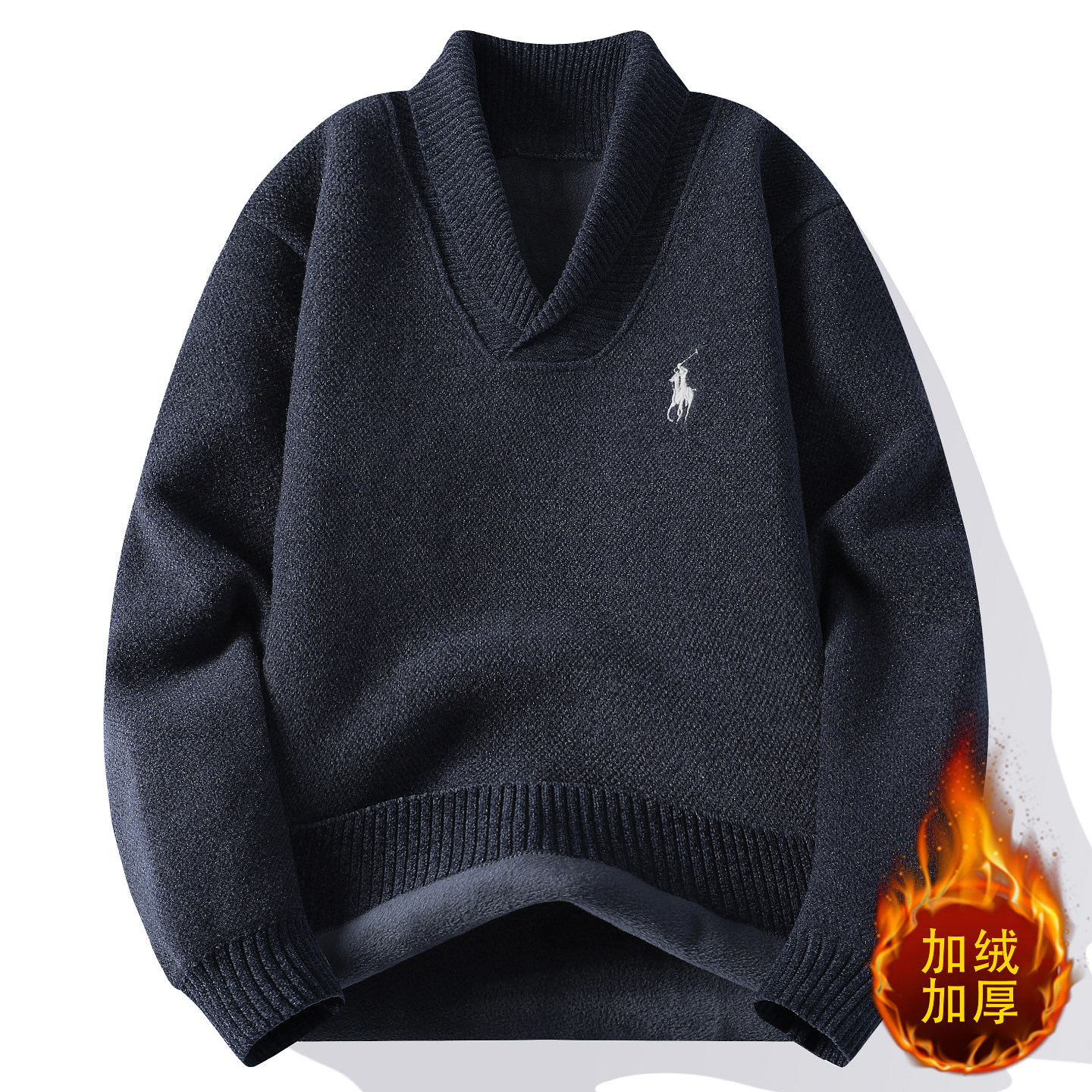 青少年加绒加厚针织衫12男孩初中高中学生13大童15岁冬季宽松毛衣