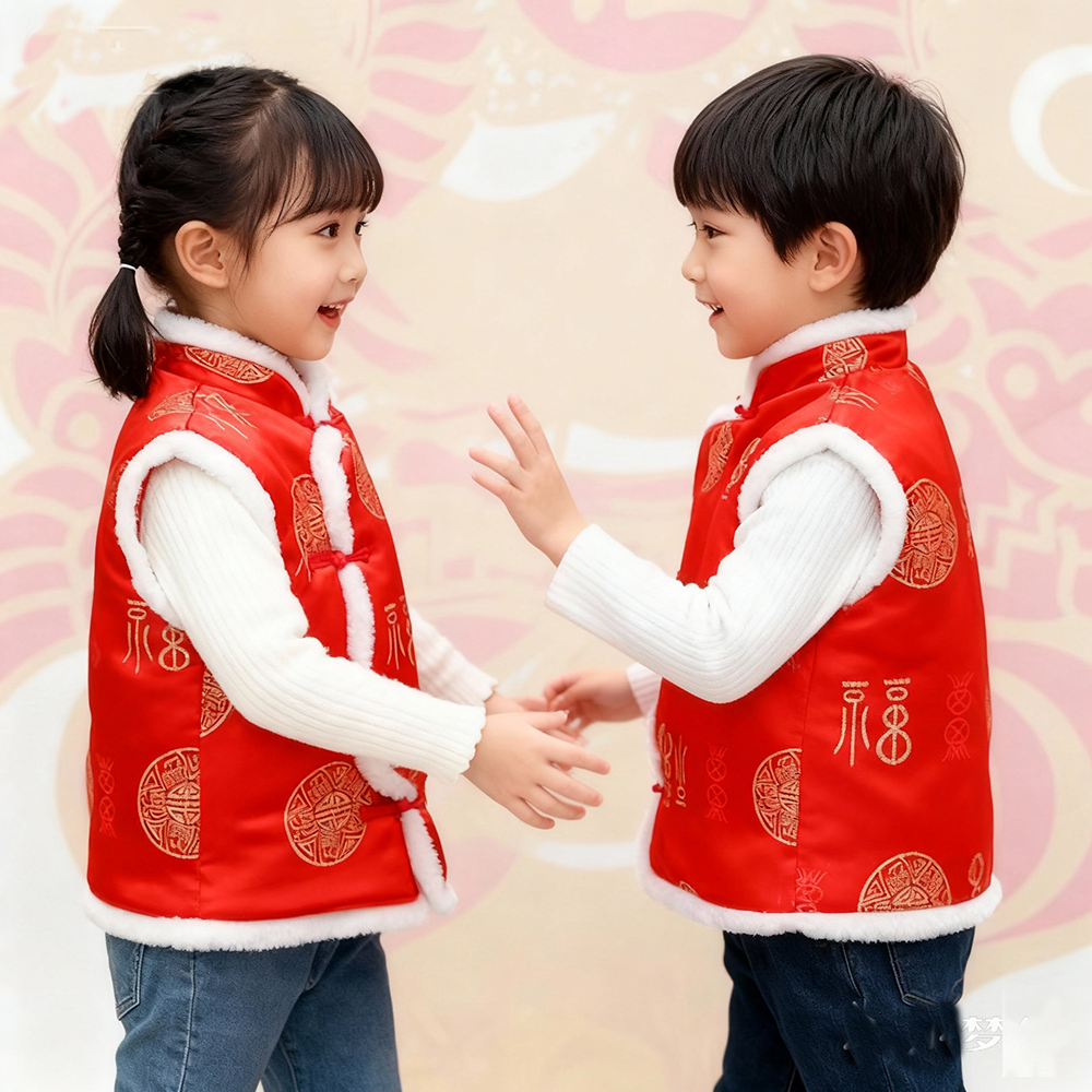 婴儿马甲秋冬季女男宝宝棉背心中国风婴幼儿唐装马夹男童汉服新年