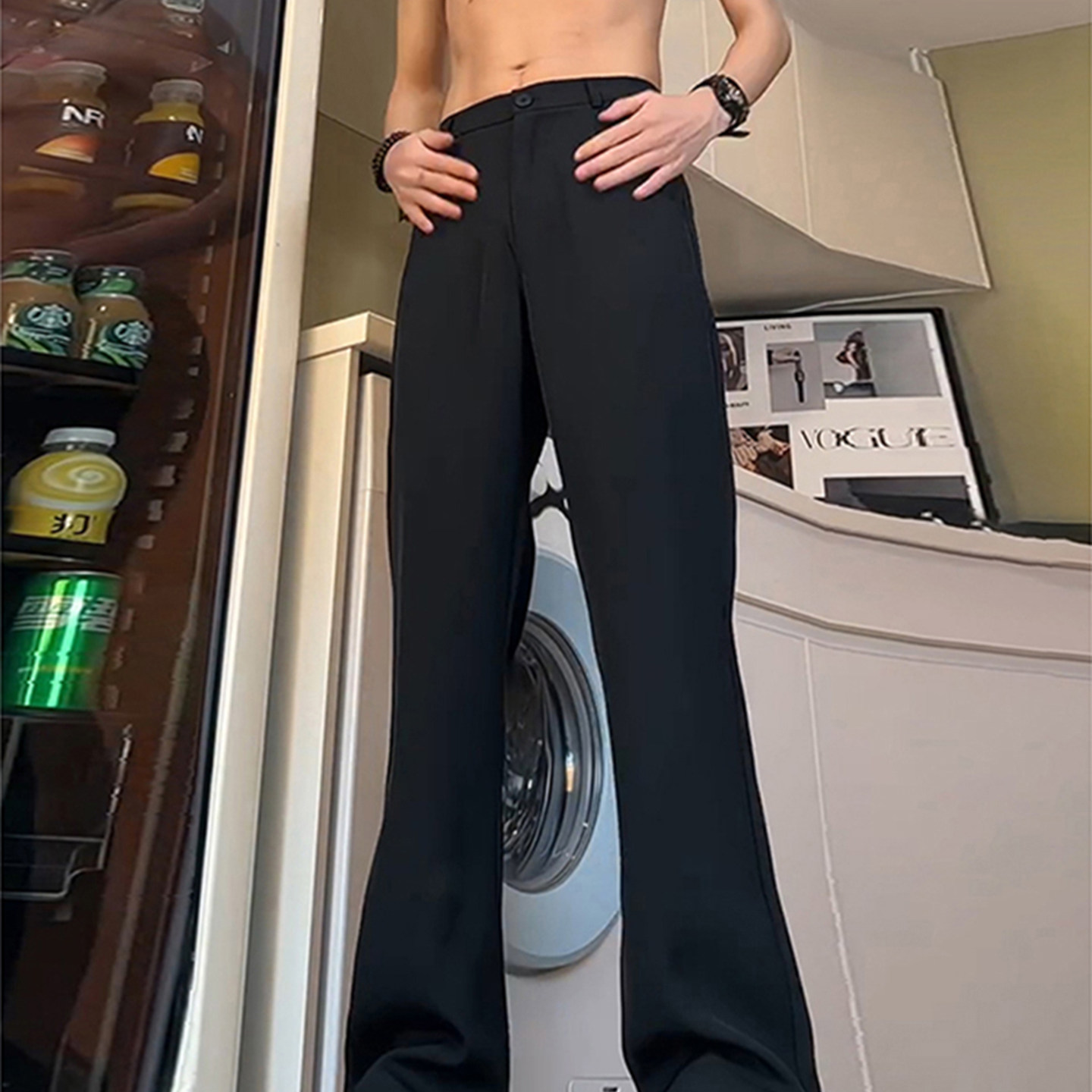 黑色直筒加绒西裤男款秋冬季高级感垂坠感裤子修身微喇休闲西装裤