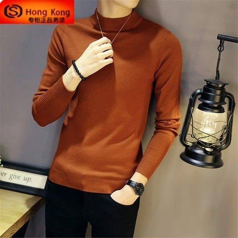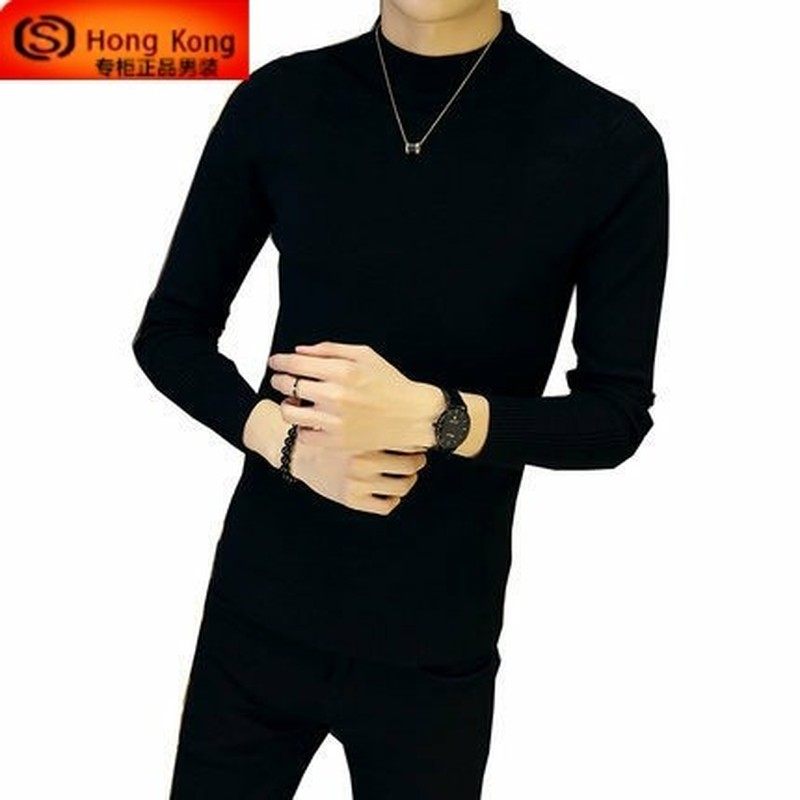 半高领毛衣男款2025新款秋冬季纯色修身打底衫中领男士针织羊毛衫