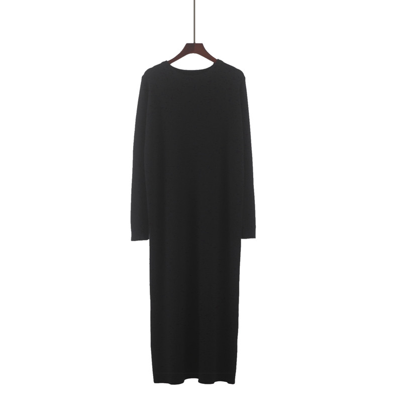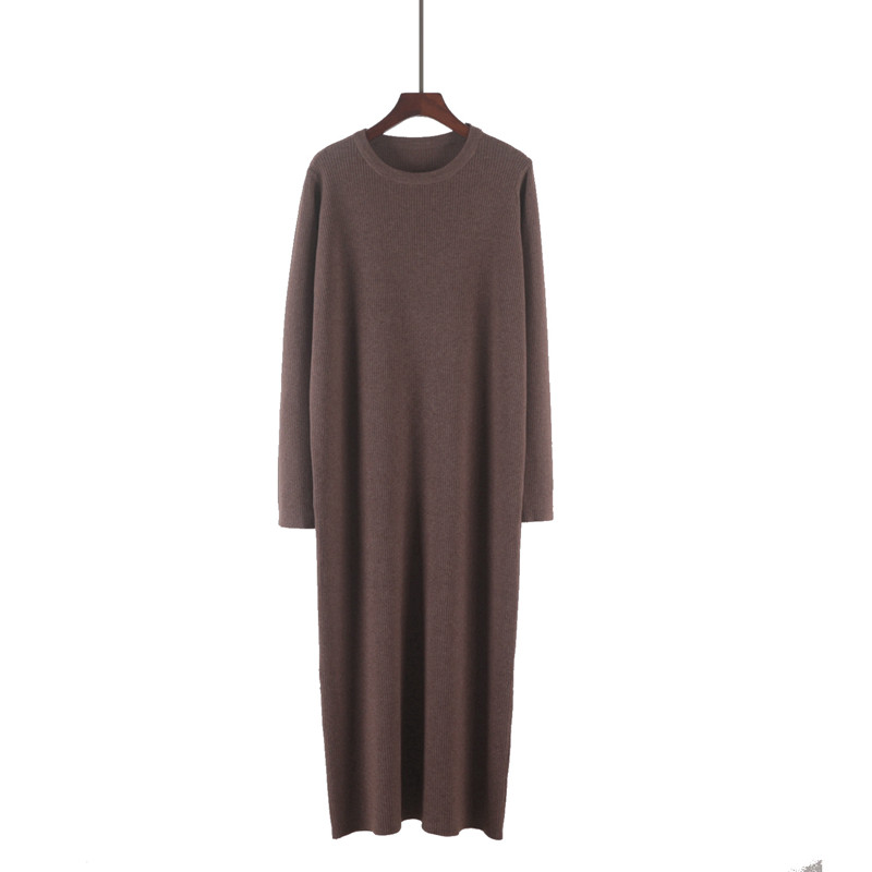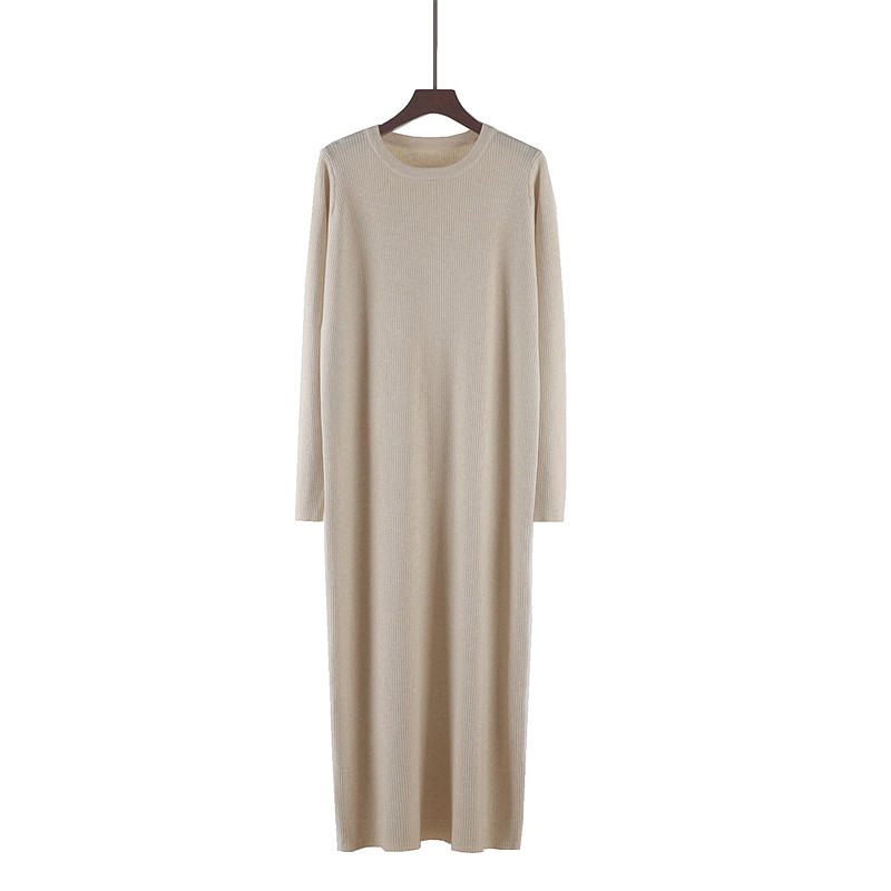 秋冬圆领长款针织连衣裙女配大衣宽松内搭垂坠感过膝打底毛衣长裙
