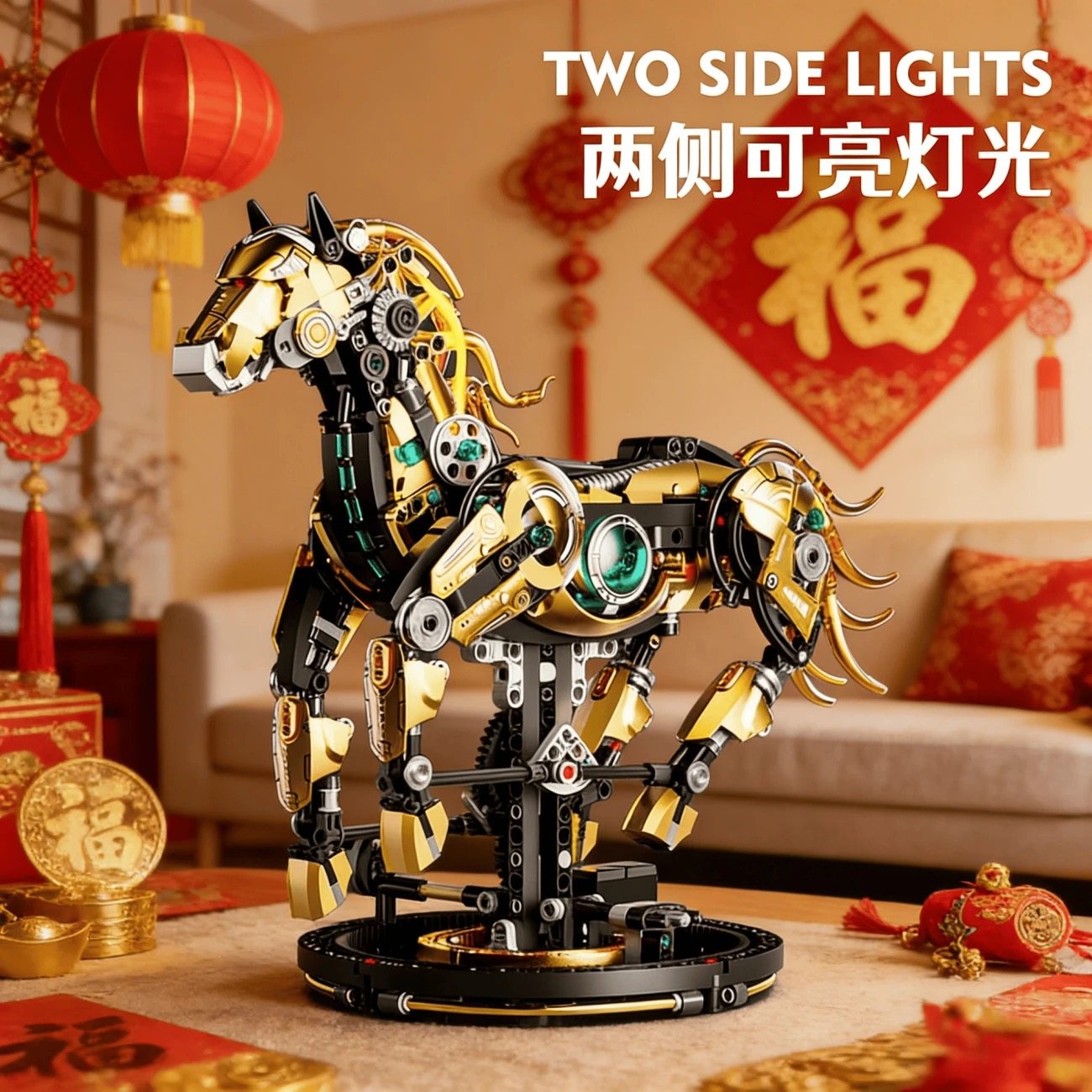 电动机械战马适用乐高积木拼装玩具男孩子生肖马年新年礼物摆件